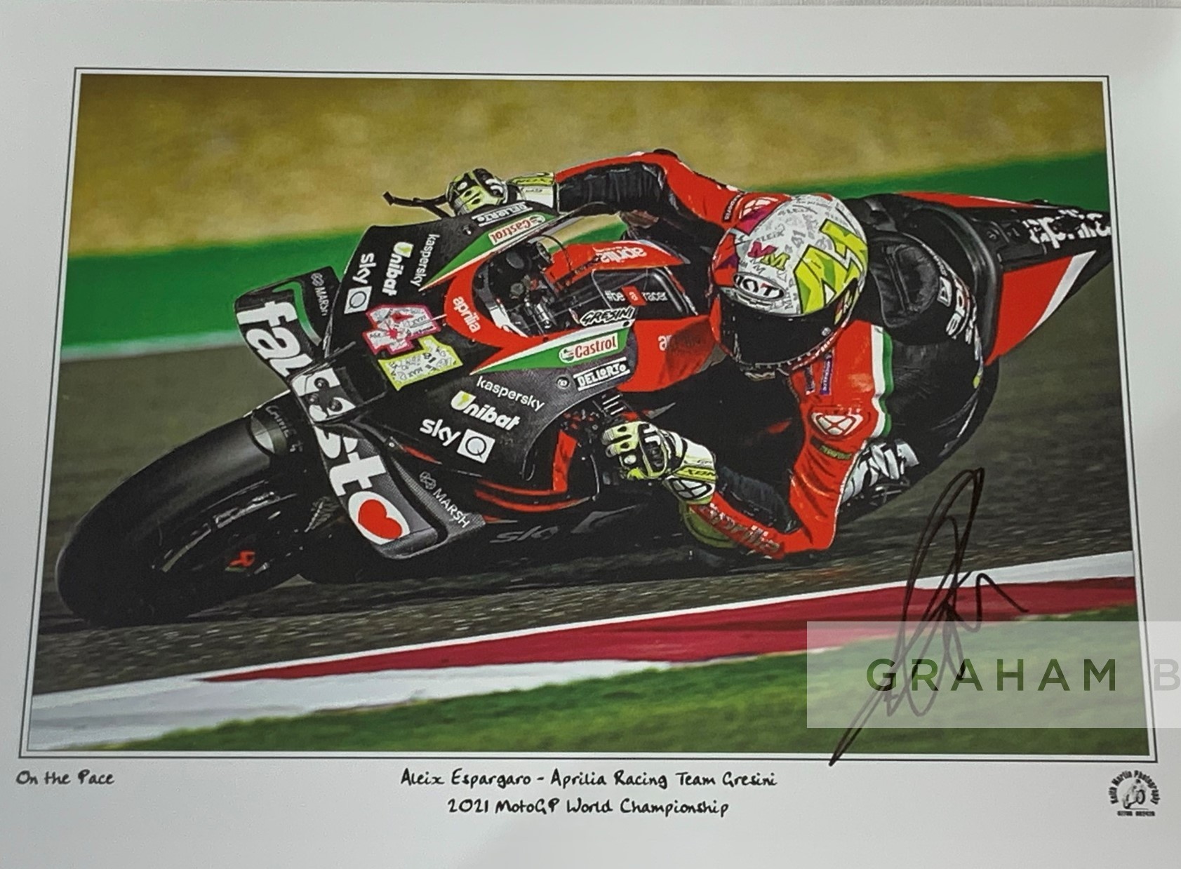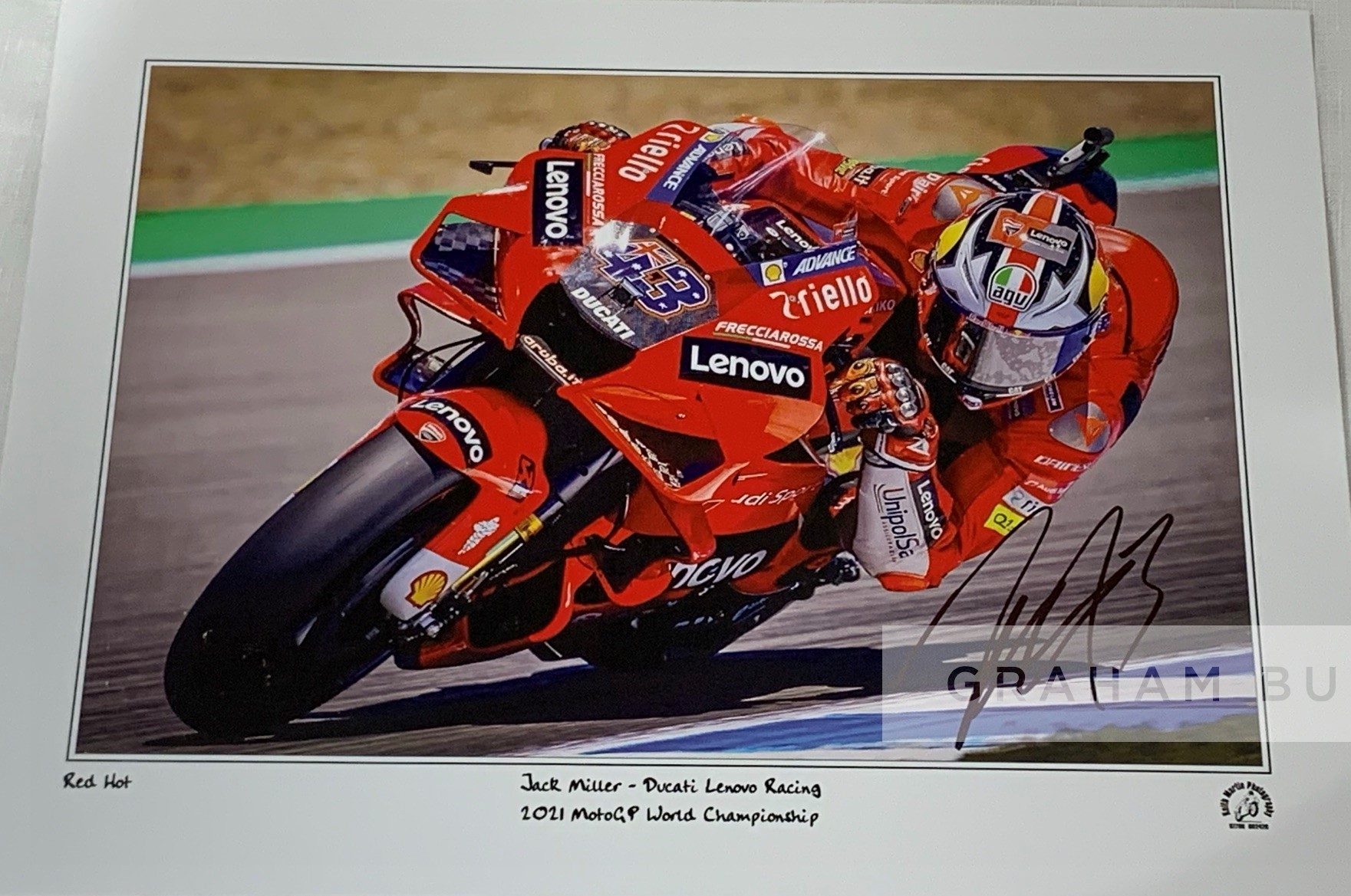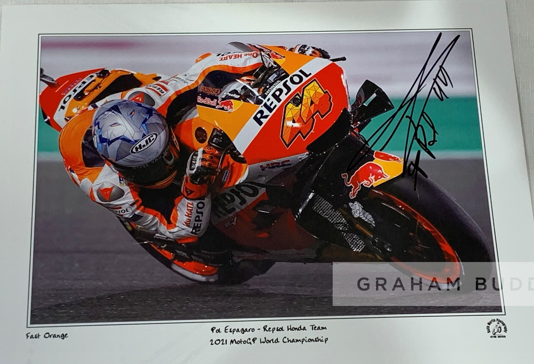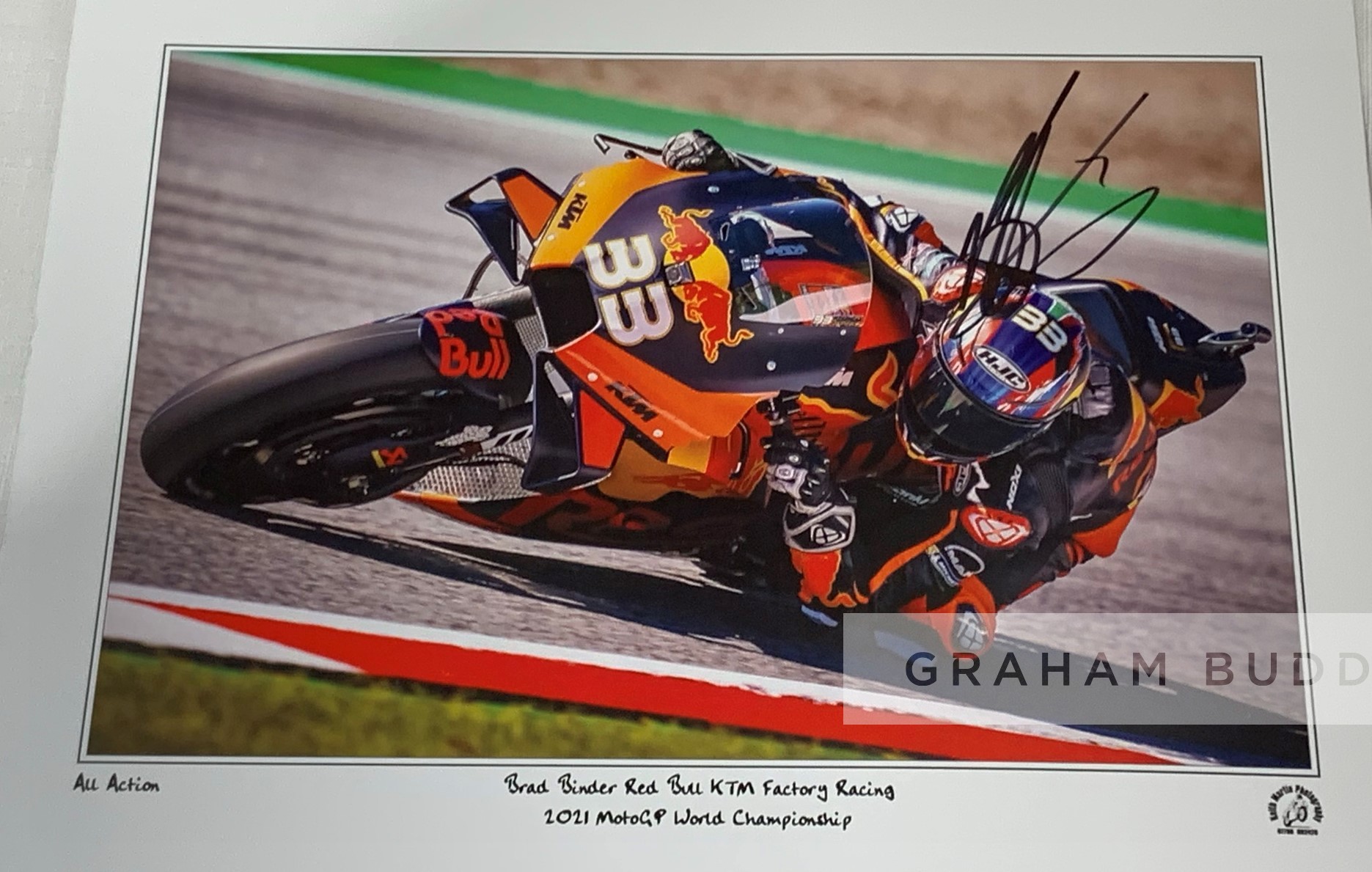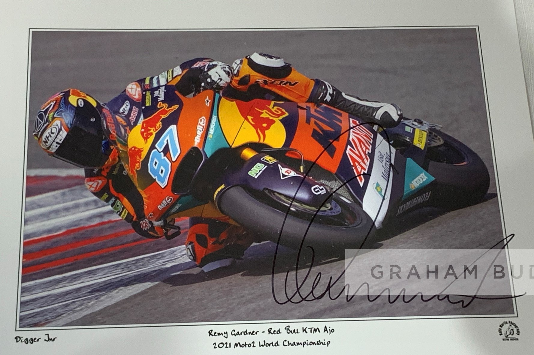Moto GP (2021) signed limited edition A3 size Art Prints, all hand signed by the Moto GP rider pictured, Francesco "Pecco" Bagnaia (Ducati Lenovo Racing), Alex Rins (Team Suzuki Ecstar), Jack Miller (Ducati Lenovo Racing), Takaaki Nakagami (LCR Honda), Alex Marquez (LCR Honda), Aleix Espargo (Aprila Racing Team Gresini), Pol Espargo (Repsol Honda Team), Johann Zarco (Pramac Racing Ducati), Brad Binder (Red Bull KTM Factory Racing) & Remy Gardner (Moto 2 – Red Bull KTM Ajo), with COA with photo proof (10)