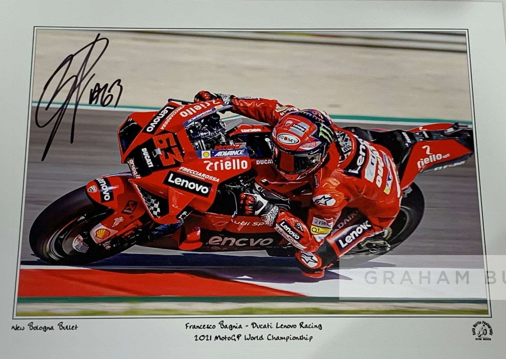 Moto GP (2021) signed limited edition A3 size Art Prints, all hand signed by the Moto GP rider pictured, Francesco "Pecco" Bagnaia (Ducati Lenovo Rac