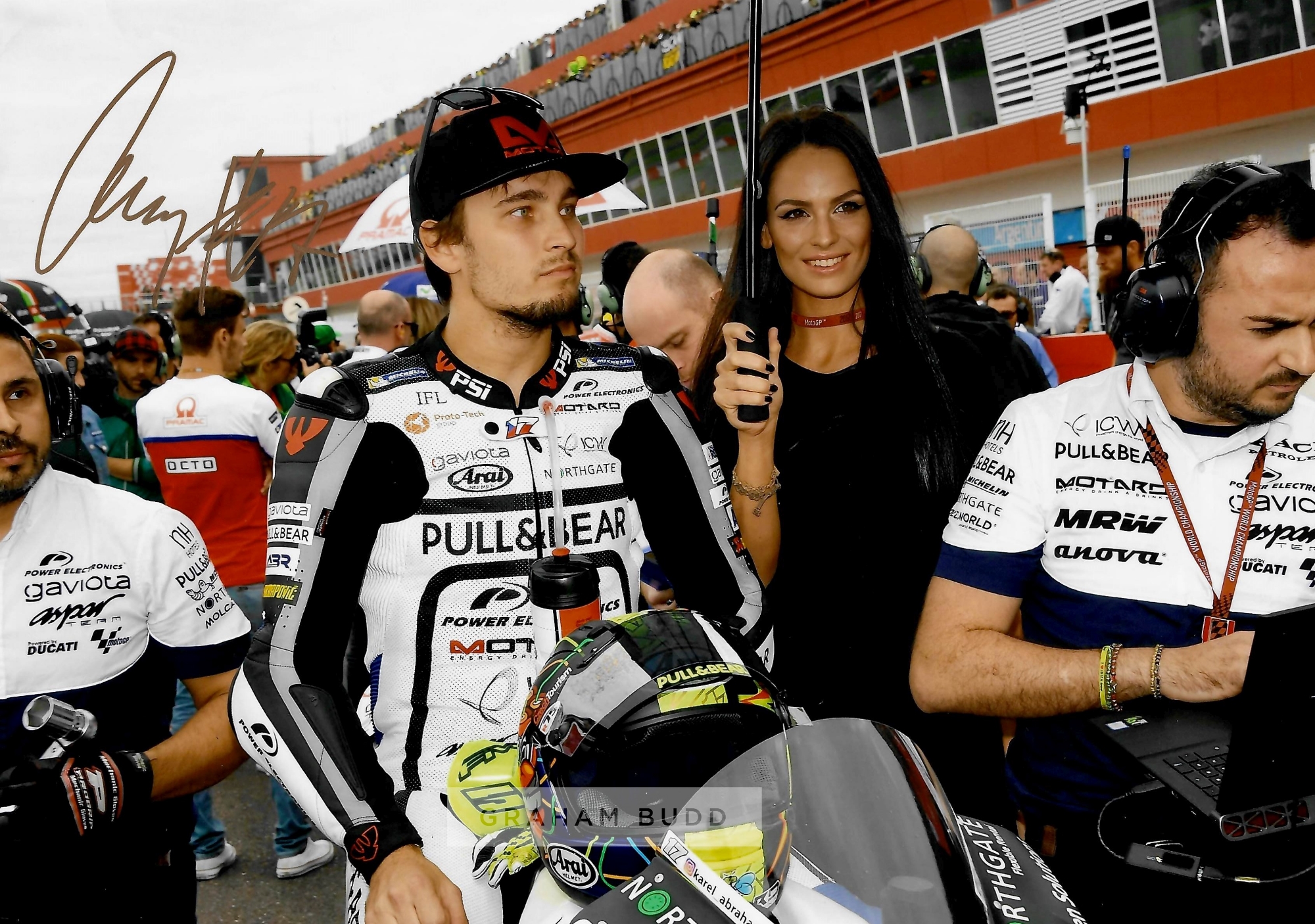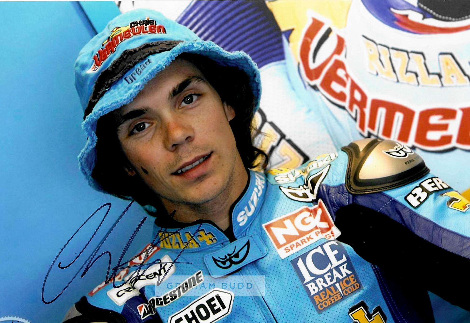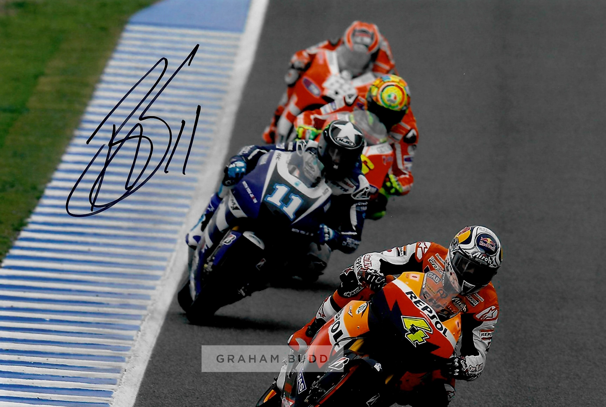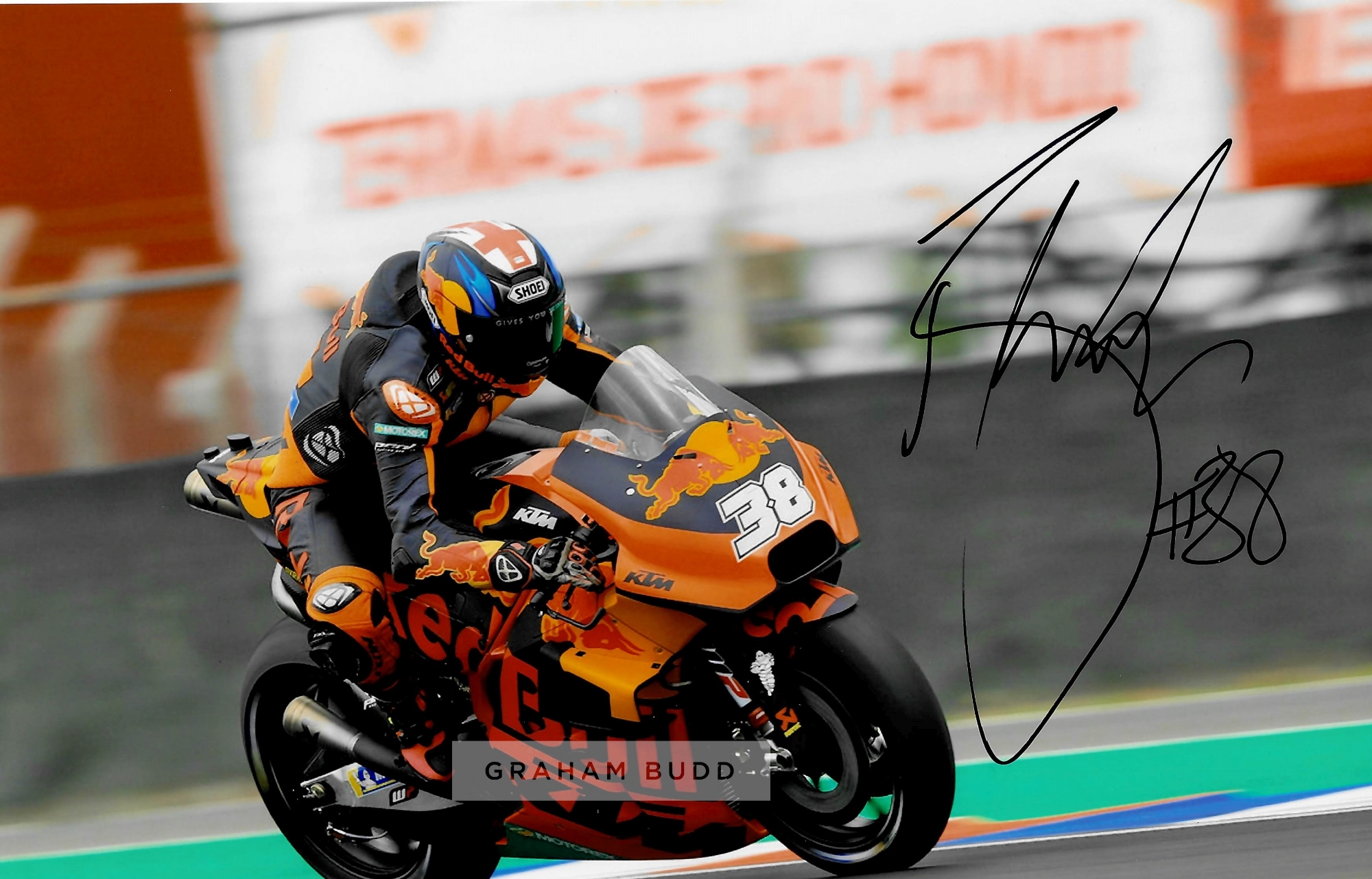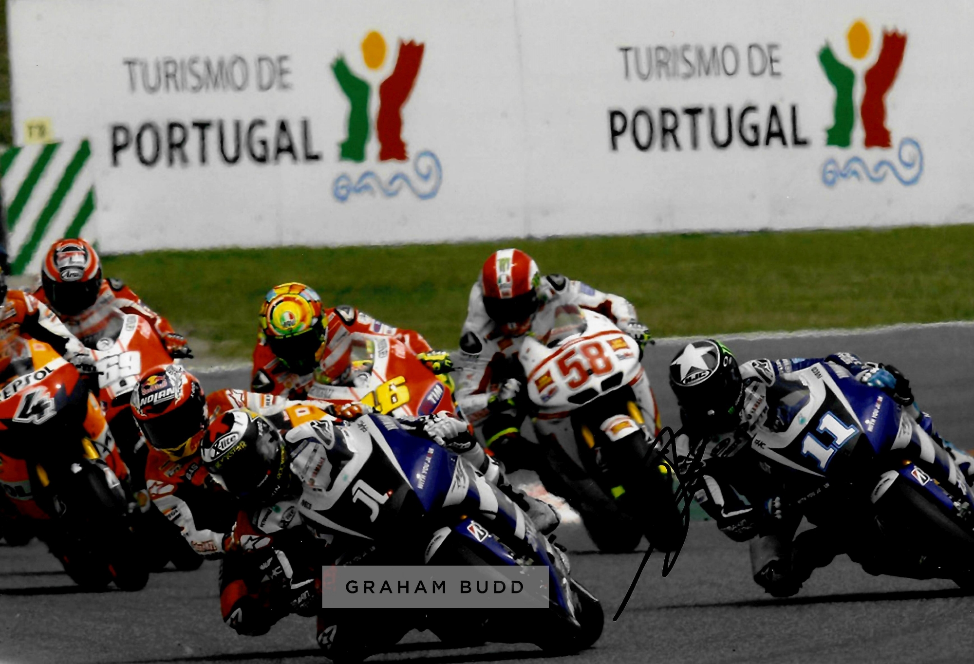 Collection of Moto GP signed photographs, including Mick Doohan no.1 (Australia), Randy de Puniet no.14 (France), Bryan Staring no.67 (Australia), all 8 by 10in., Wayne Gardner no.5 (Australia), Dani Pedrosa no.26 (Spain), Chris Vermeulen no.77 (Australia), Jorge Lorenzo no.99 (Spain), Colin Edwards no.5 (USA), Jonas Folger no.94 (Germany), Scott Redding no.45 (UK), Bradley Smith no.38 (UK), Loris Baz no.76 (France), Ben Spies no.11 (USA), Karel Abraham no.17 (Czech Republic), all 8 by 12in., includes COA and photo proof of signing, (14)