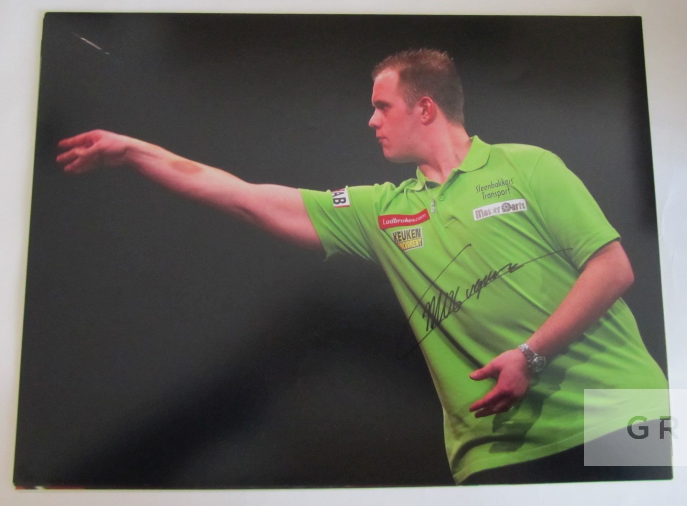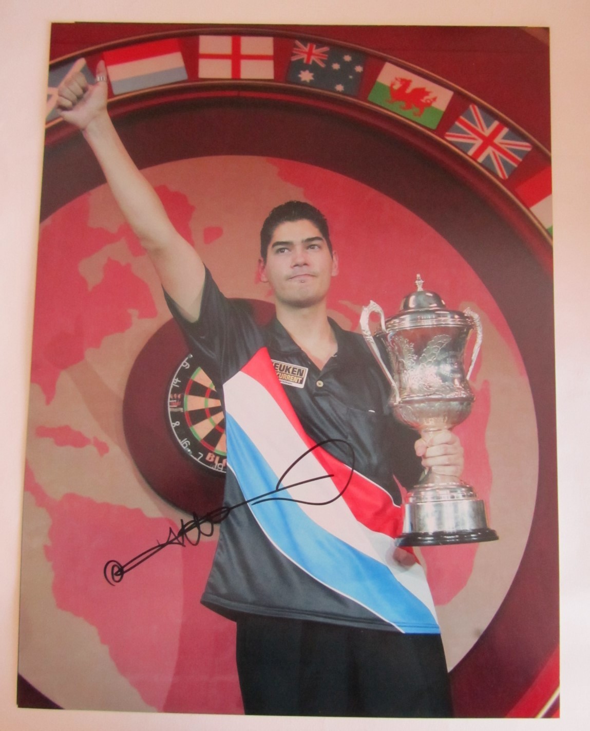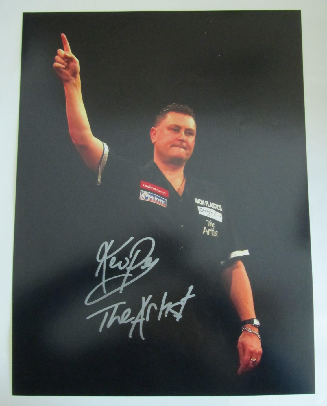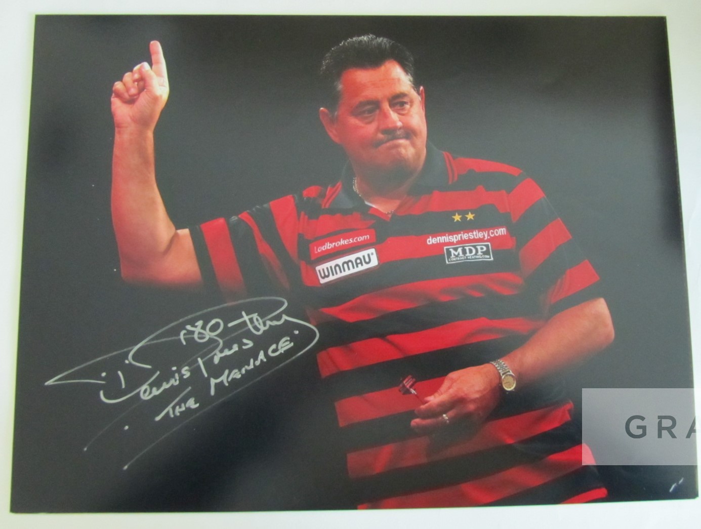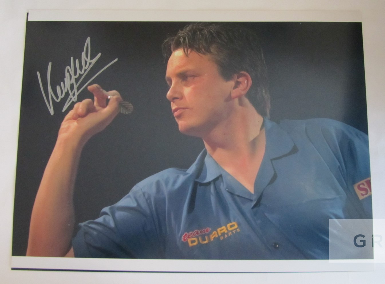 DARTS - Darts players Michael Van Gurwen, Dennis Priestley, Terry Jenkins Keith Deller, Jelle Klaasen, Ronnie Baxter and Kevin Painter – Seven (7) large original 16”x12” autographed display photographs, Ronnie Baxter – World Championship runner up 1999 & 2000. Kevin Painter – World Championship runner-up 2004. Keith Deller – World Championship winner 1983. Jelle Klaasen - World Championship winner 2006. Michael Van Gurwen - World Championship winner 2014, 2017 & 2019. Dennis Priestley - World Championship winner 1991 and 1994. Terry Jenkins – World Matchplay runner-up 2007 & 2009.