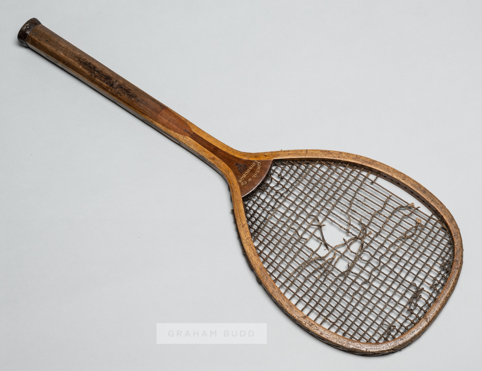 Early tennis racquet "The Whitehouse" by Slazenger and retailed by Goudie & Co of Edinburgh, the frame is sound but the thick stringing has breaks in the central area Whitehouse was the first tennis club in Scotland and Slazenger produced this racquet from around 1887.