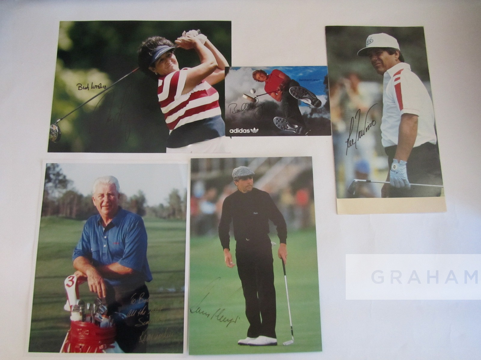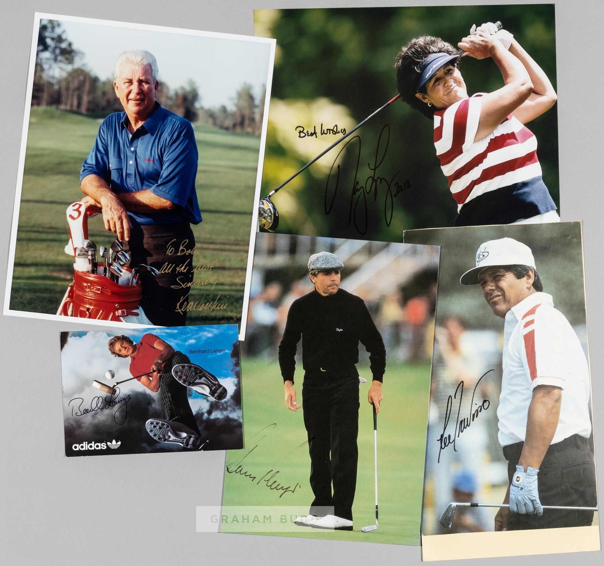 GOLF - five original signed photographs of Major Championship winners, Gary Player, Lee Trevino, Ken Venturi, Nancy Lopez & Berhard Langer