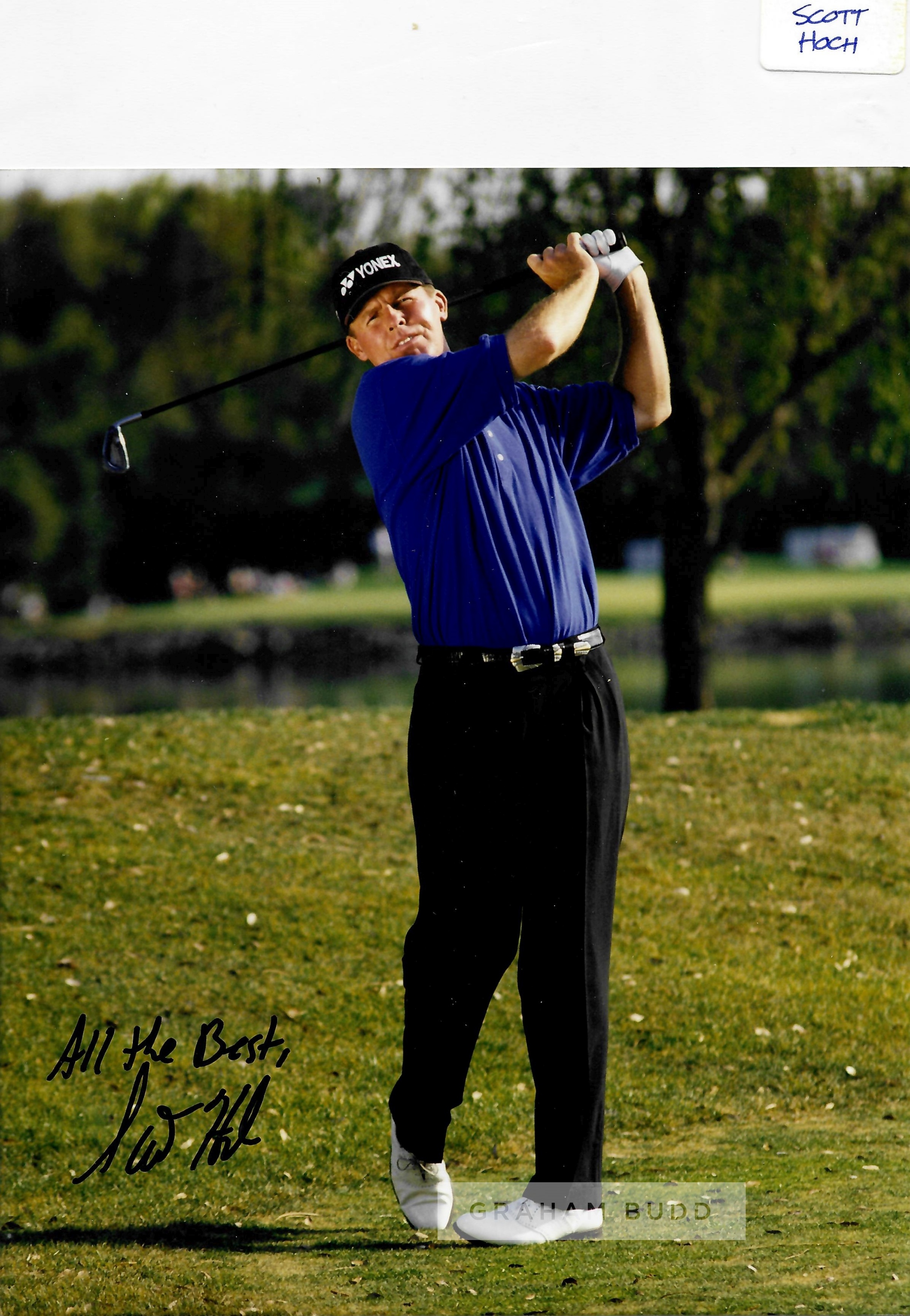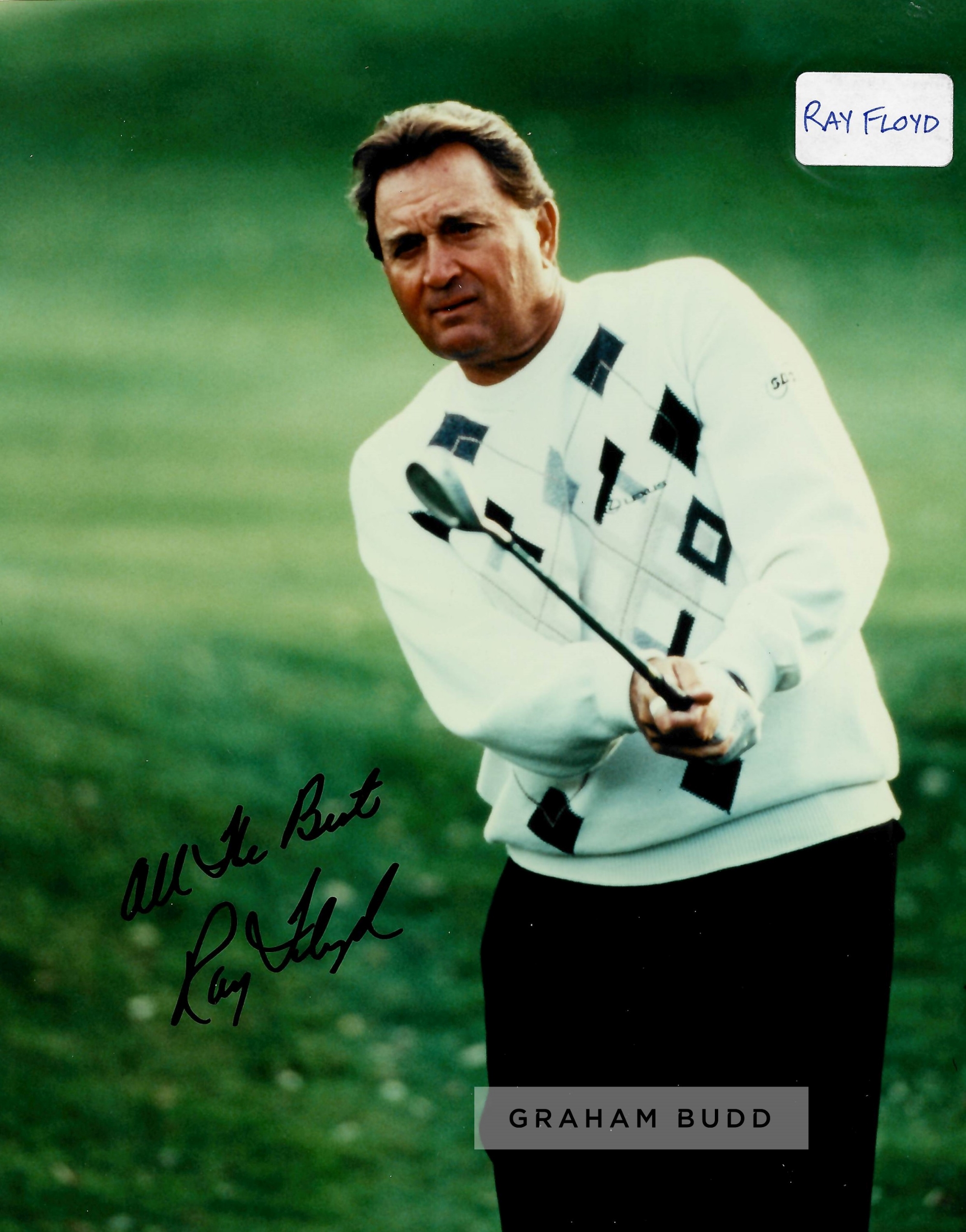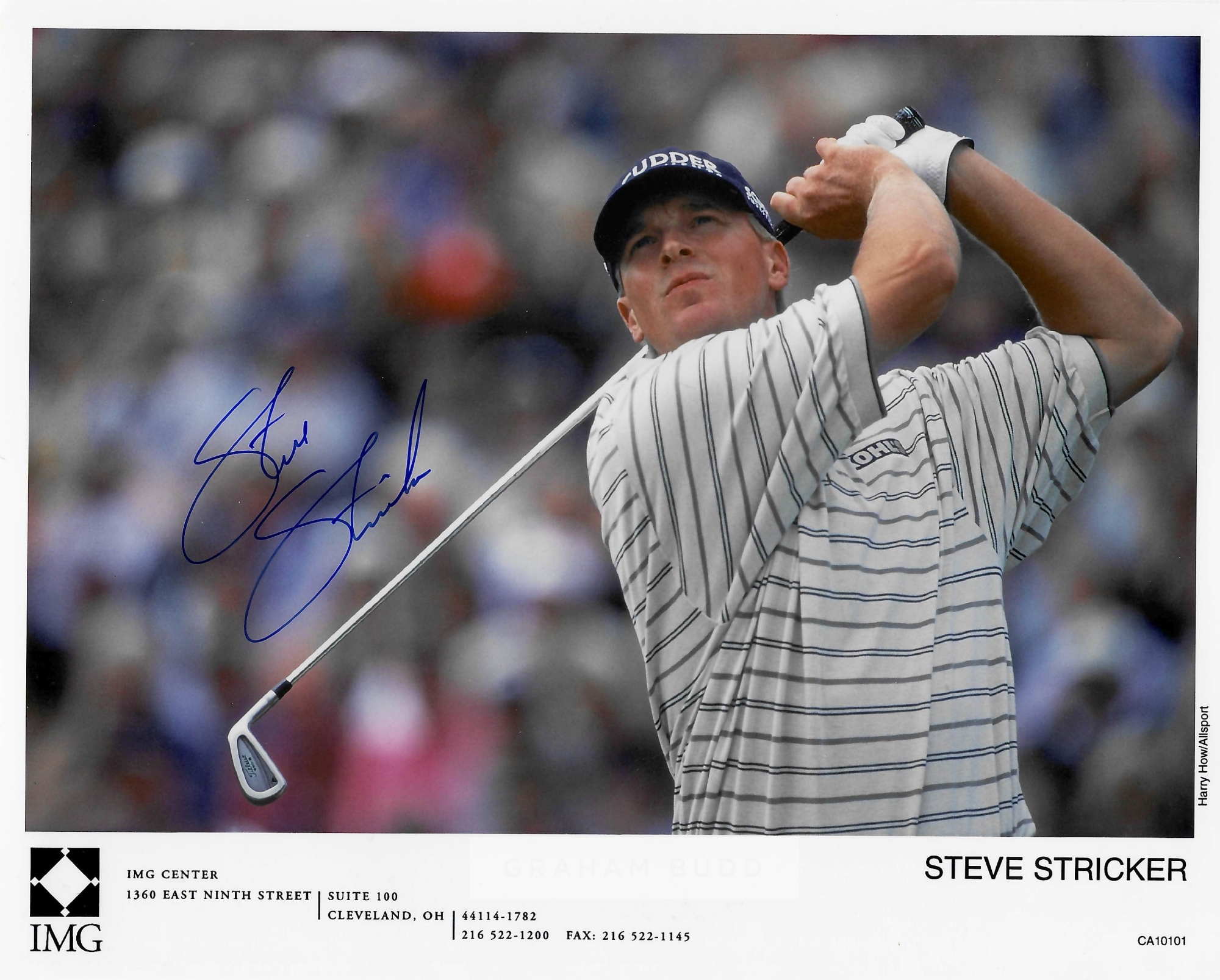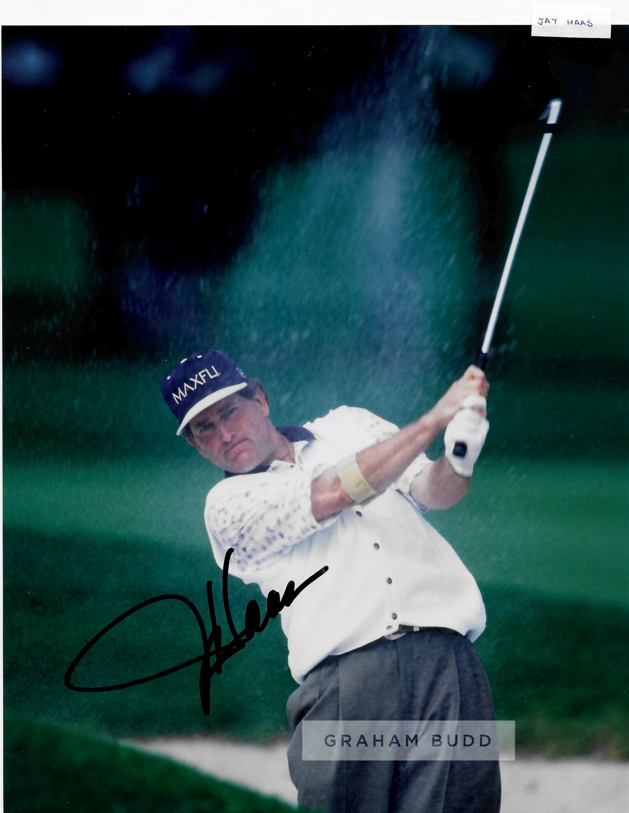 Collection of signed photographs of golf legends, including signed official IMG management photos of Mark Calcavecchia, Steve Stricker, David Frost, Larry Nelson, Tom Weiskopf and signed 8 by 10in. photographs of Curtis Strange, Brad Faxton, Jay Haas, Scott Hoch, Mark O’Meara, Ray Floyd and Fuzzer Zoeller, with official COA, (12)