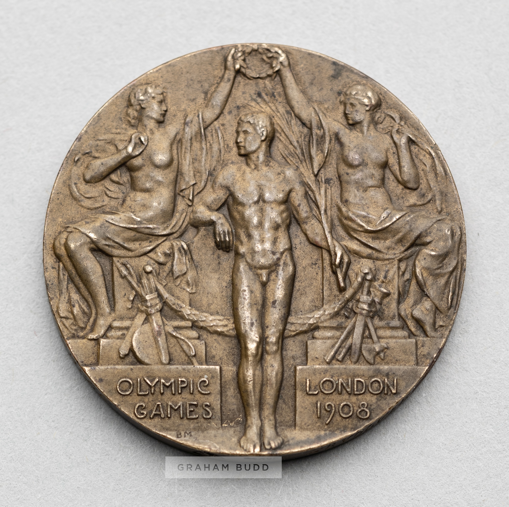 London 1908 Olympic Games bronze prize medal awarded to the Great Britain team in the Men's 50 Yard Revolver and Pistol competition, 11th July, bronz