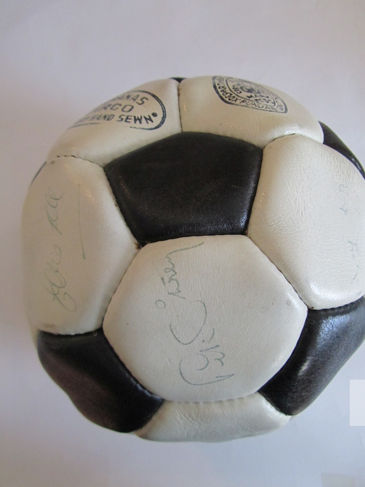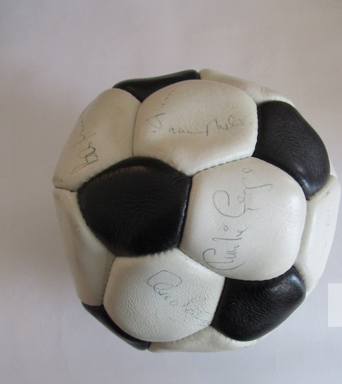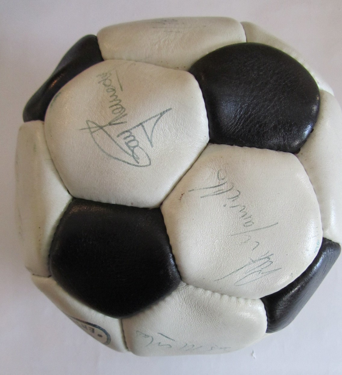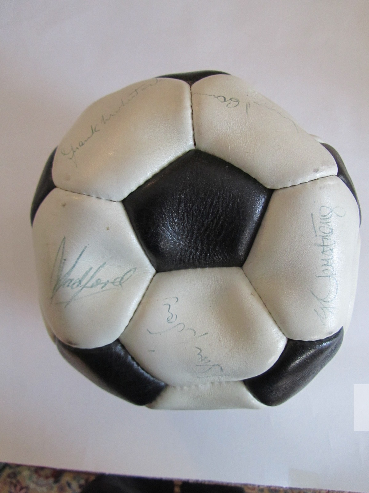 FOOTBALL - ARSENAL 1970-71 DOUBLE WINNERS CONTEMPORAY AUTOGRAPHED FOOTBALL INDIVIDUALLY SIGNED TO EACH PANEL BY THE ARSENAL DOUBLE WINNING SQUAD. SIXTEEN (16) INK SIGNATURES INCLUDING: FRANK McLINTOCK, GEORGE GRAHAM, RAY KENNEDY, GEORGE ARMSTRONG, BOB WILSON, BOB McNAB, PETER MARINELLO, CHARLIE GEORGE, PETER SIMPSON, PAT RICE, JOHN RADFORD, SAMMY NELSON, PETER STOREY, EDDIE KELLY, JOHN ROBERTS AND GEOFF BARNETT. VERY GOOD CONDITION.