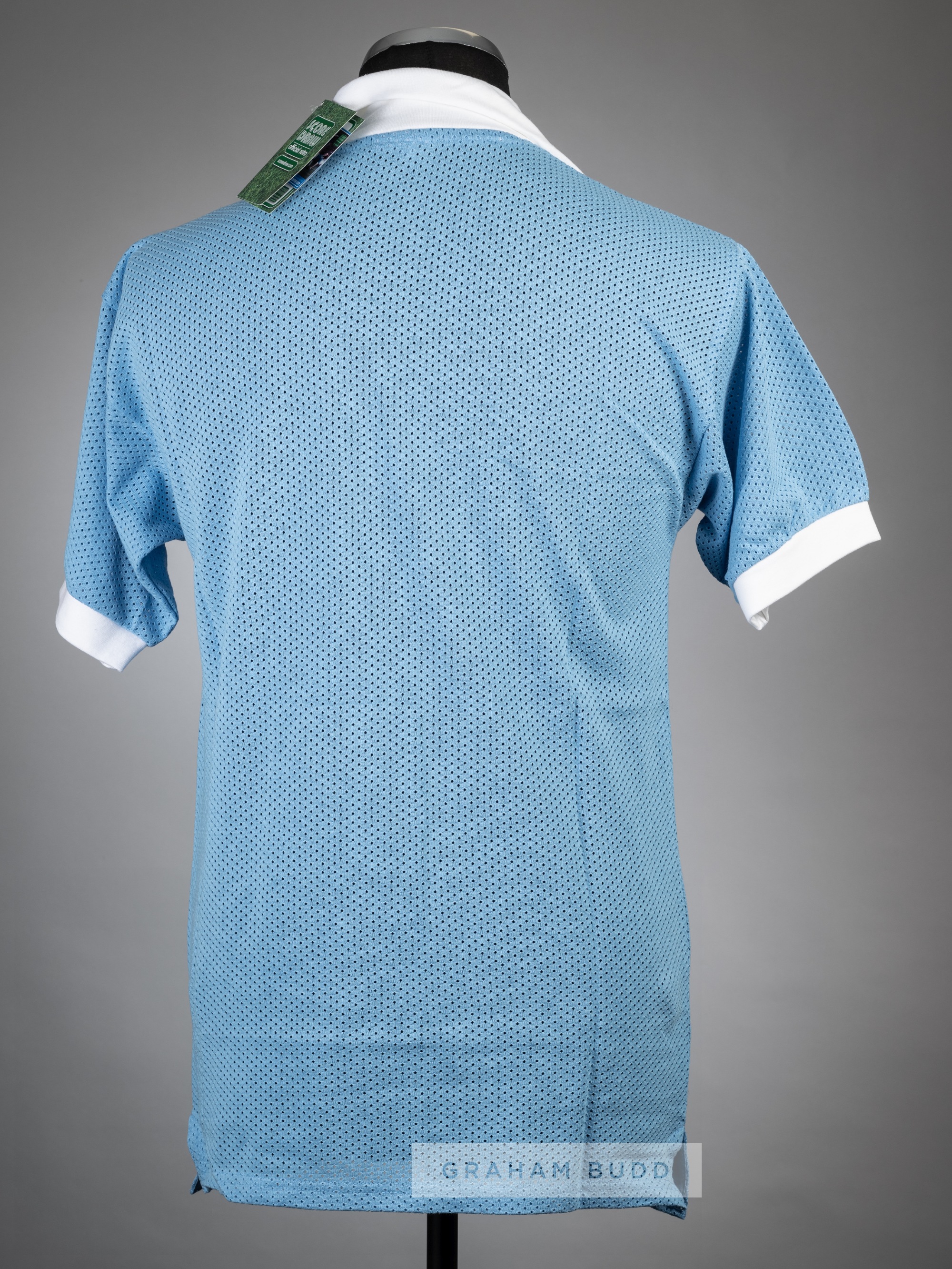 Mike Doyle & Dennis Tueart signed blue Manchester City 1976 Football League Cup Final retro jersey, Score Draw, signed in black marker pen with Sport