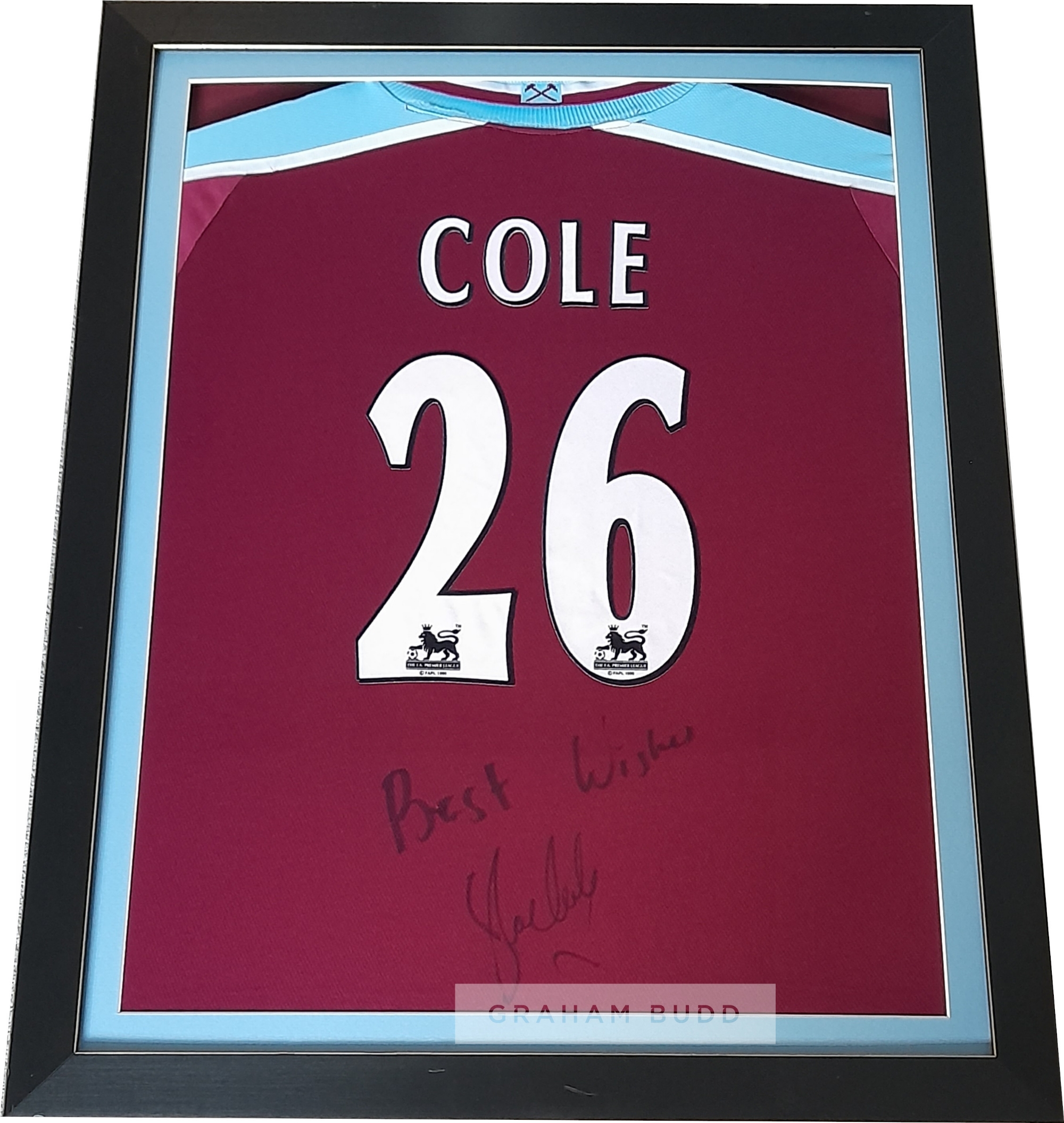 Joe Cole signed West Ham United replica jersey, reverse mounted to display signature on back of the shirt in black marker and inscribed BEST WISHES,