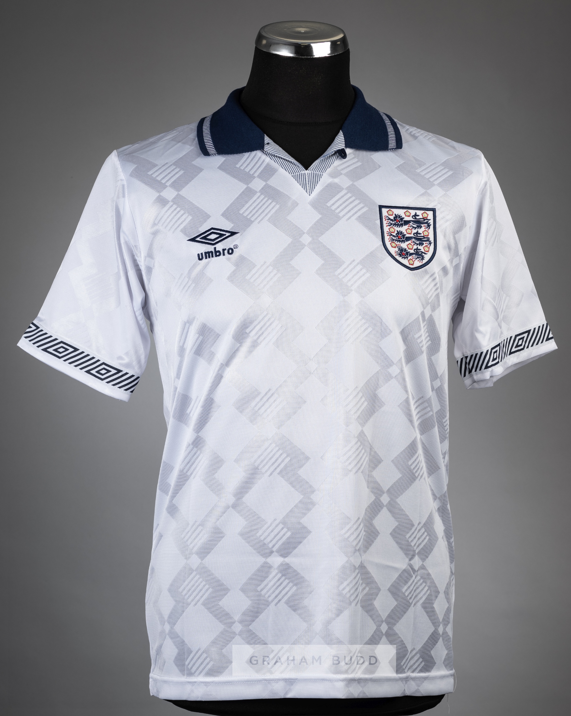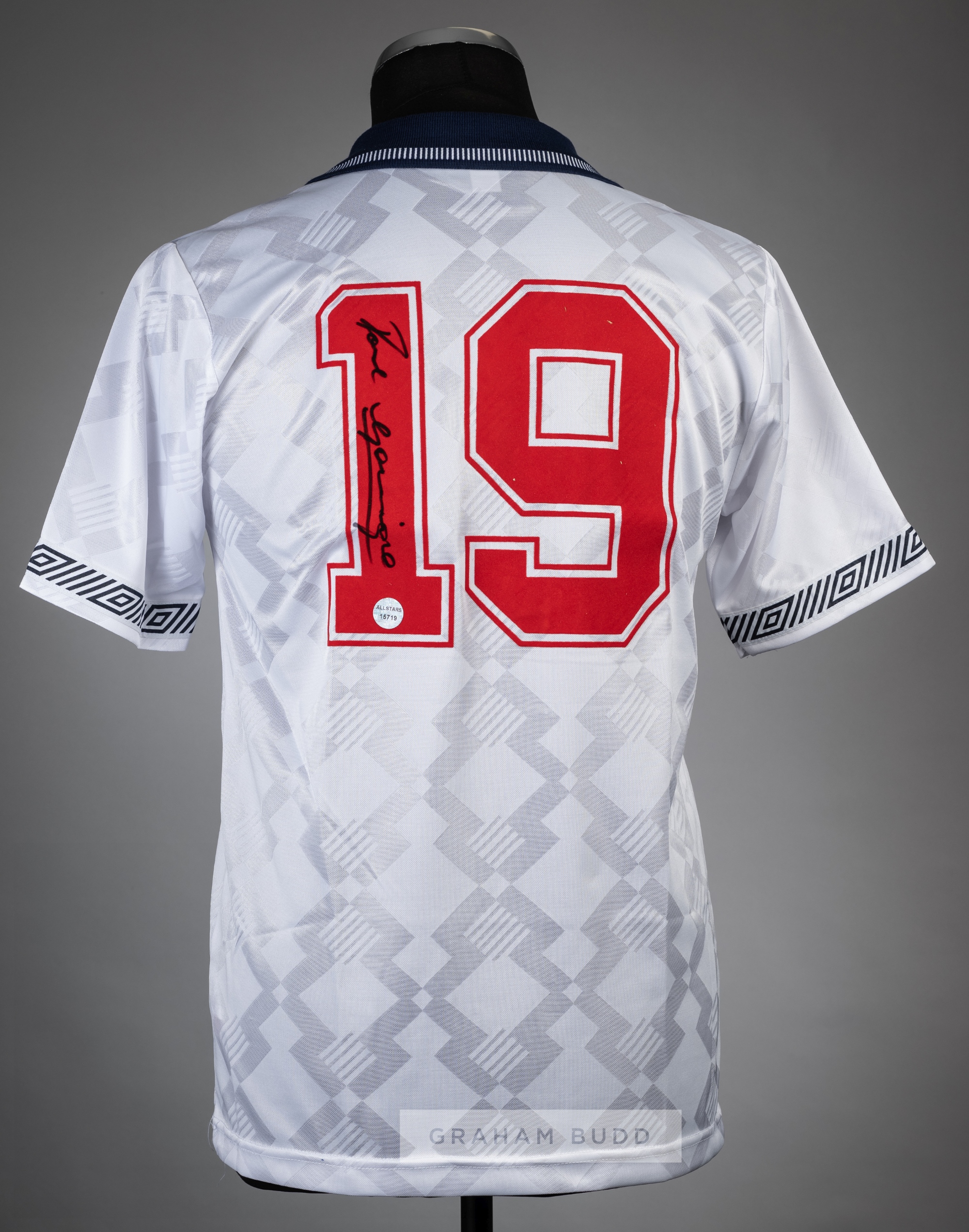 Paul Gascoigne signed white England retro jersey, Umbro, signed in black marker pen, with Allstars COA