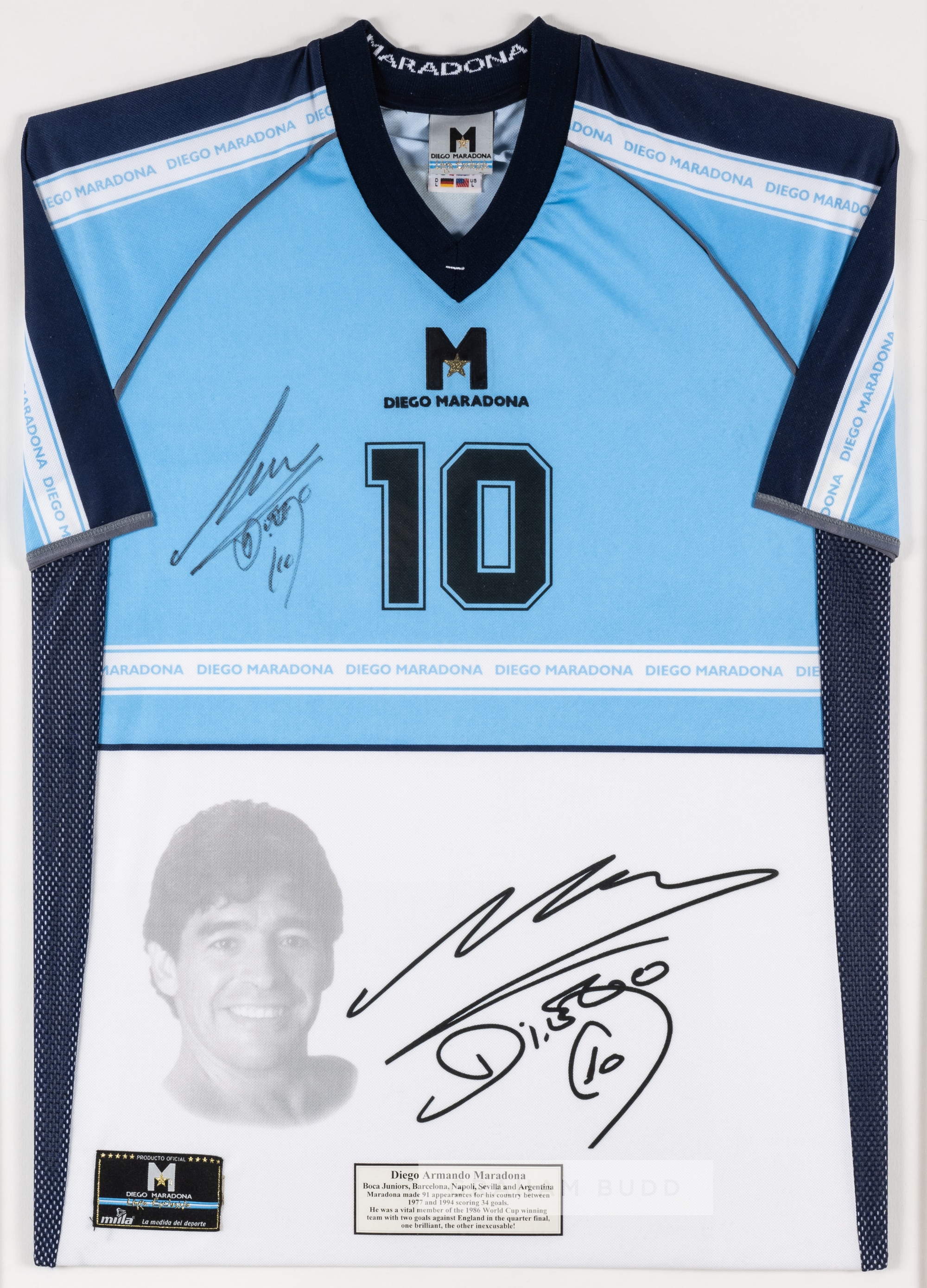FOOTBALL - Diego Maradona signed shirt, mounted, framed & glazed Please be aware all glass will be removed from framed and glazed items prior to po