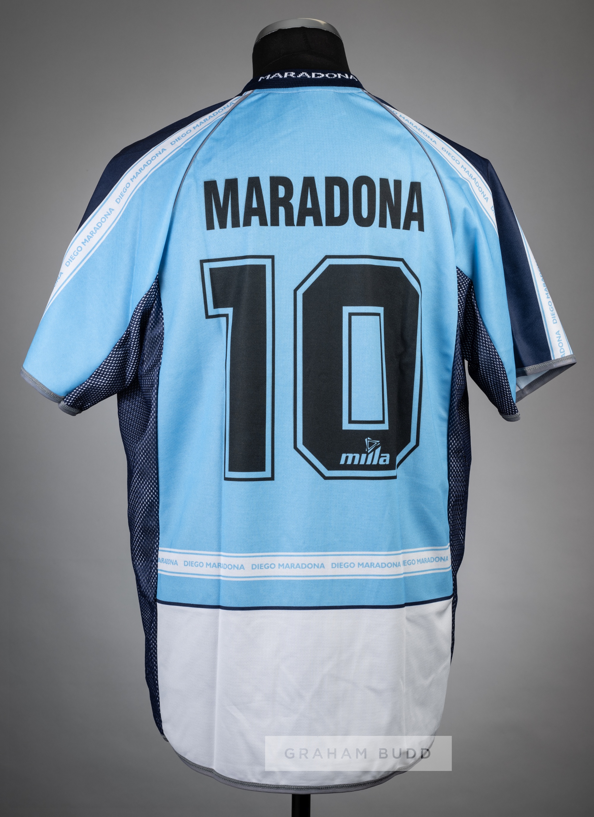 Maradona signed blue no.10 tribute jersey, signed in black marker pen