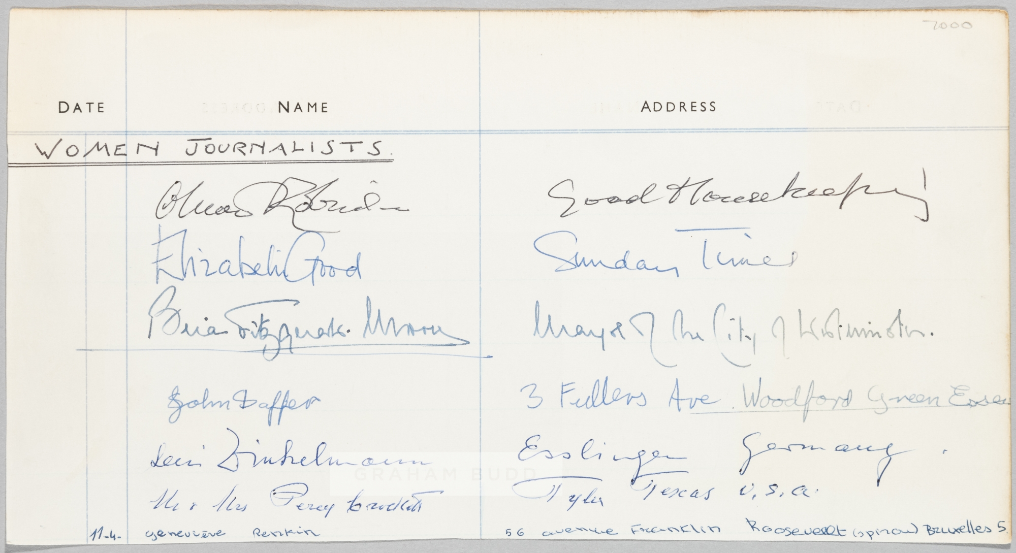 FOOTBALL - Part page from a hotel visitor’s book page signed (with additional team name) by Billy Bremner (Leeds), Ian St John (Liverpool), Jack Carlt