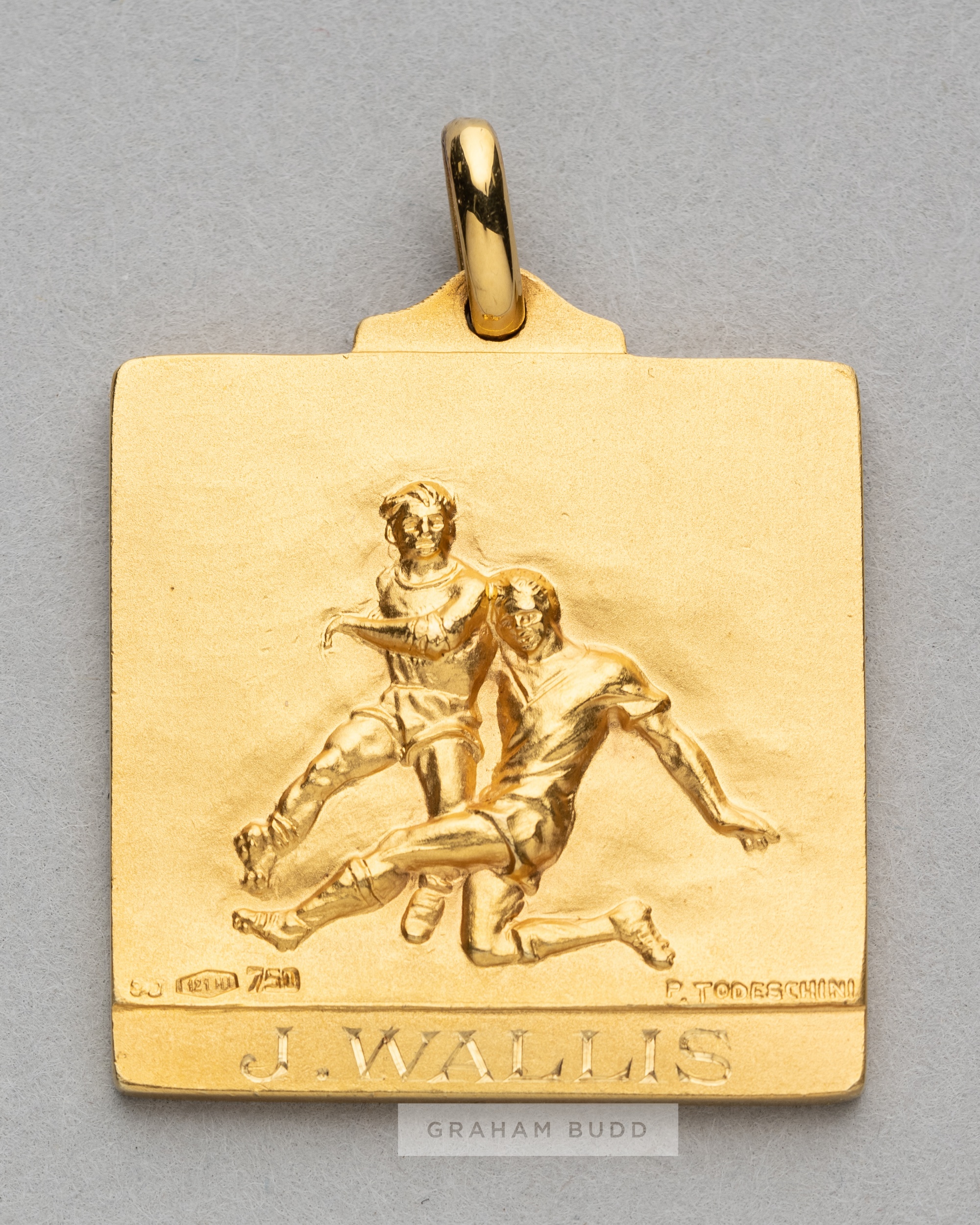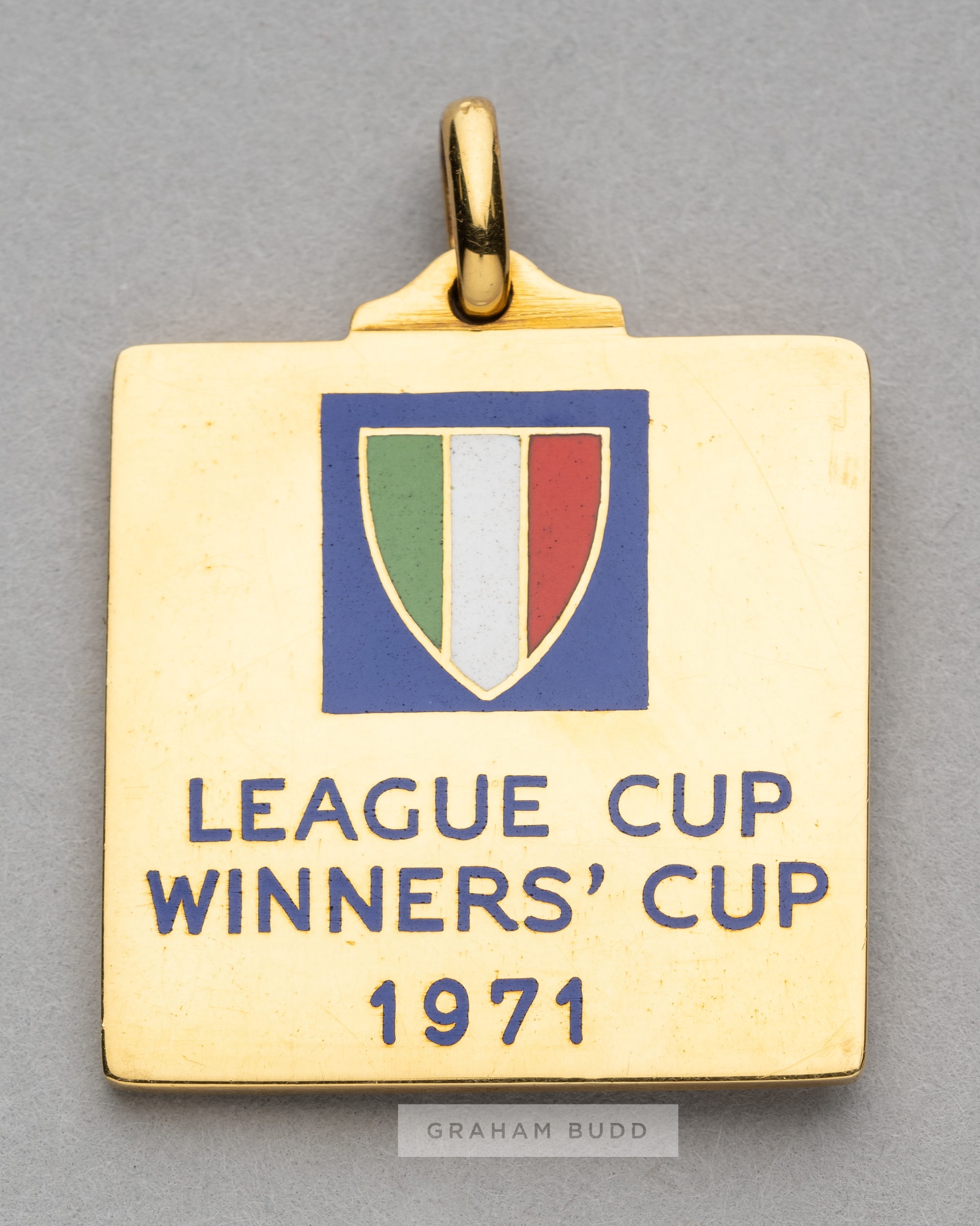 Tottenham Hotspur gold winner's medal from the 1971 Anglo-Italian League Cup Winners' Cup awarded to the kit man Johnny Wallis, by Stefano Johnson of Milano, bearing the Italian flag, the reverse with a football scene in raised relief, hallmarked .750 continental gold & enamel, (22g) original fitted case. This short lived competition between the English League Cup winners and the Italian League Cup winners was won by Spurs in 1971 when they defeated Torino 3-0 on aggregate.
