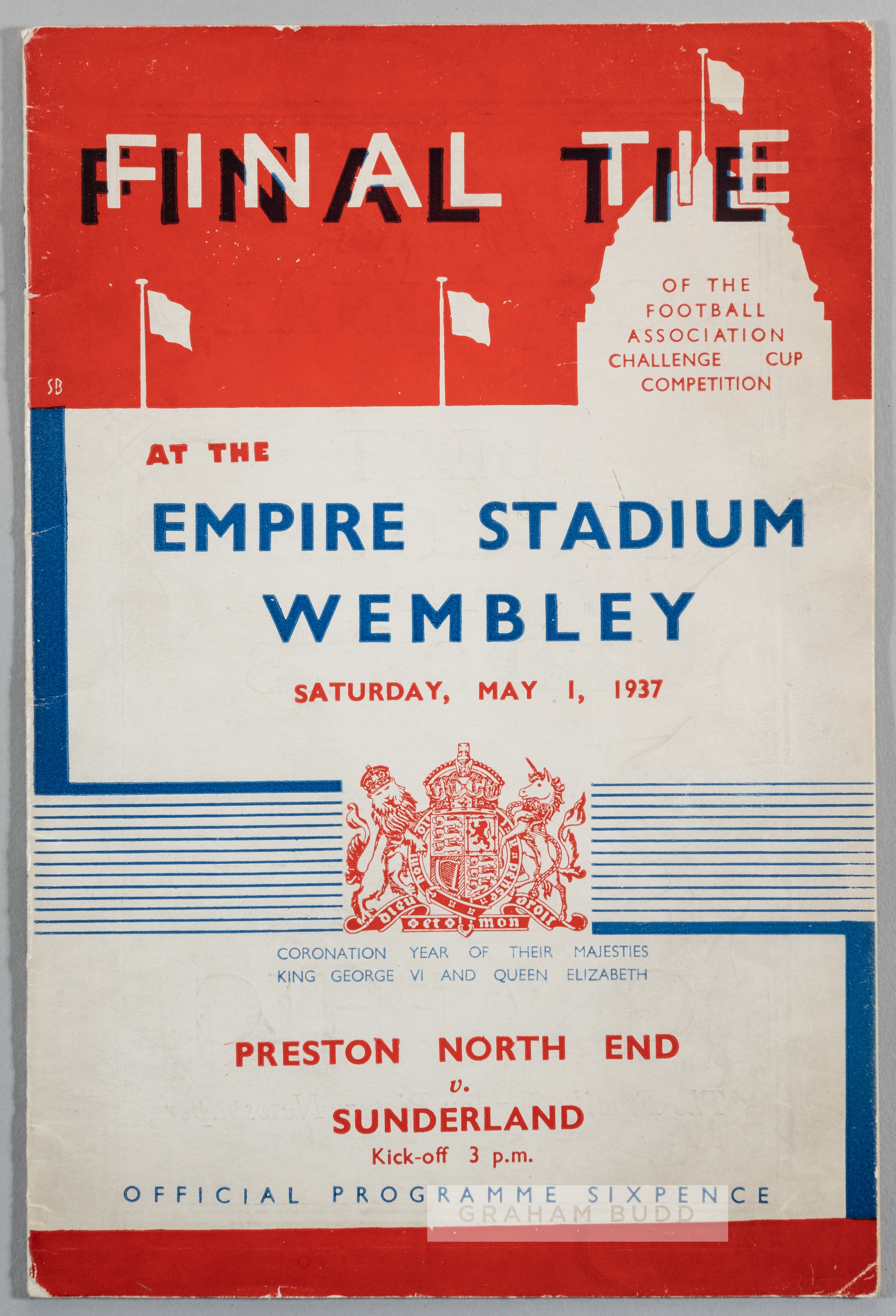 F.A. Cup final programme Preston North End v Sunderland 1st May 1937, personal copy of the PNE goalkeeper George "Harry" Holdcroft, excellent conditi