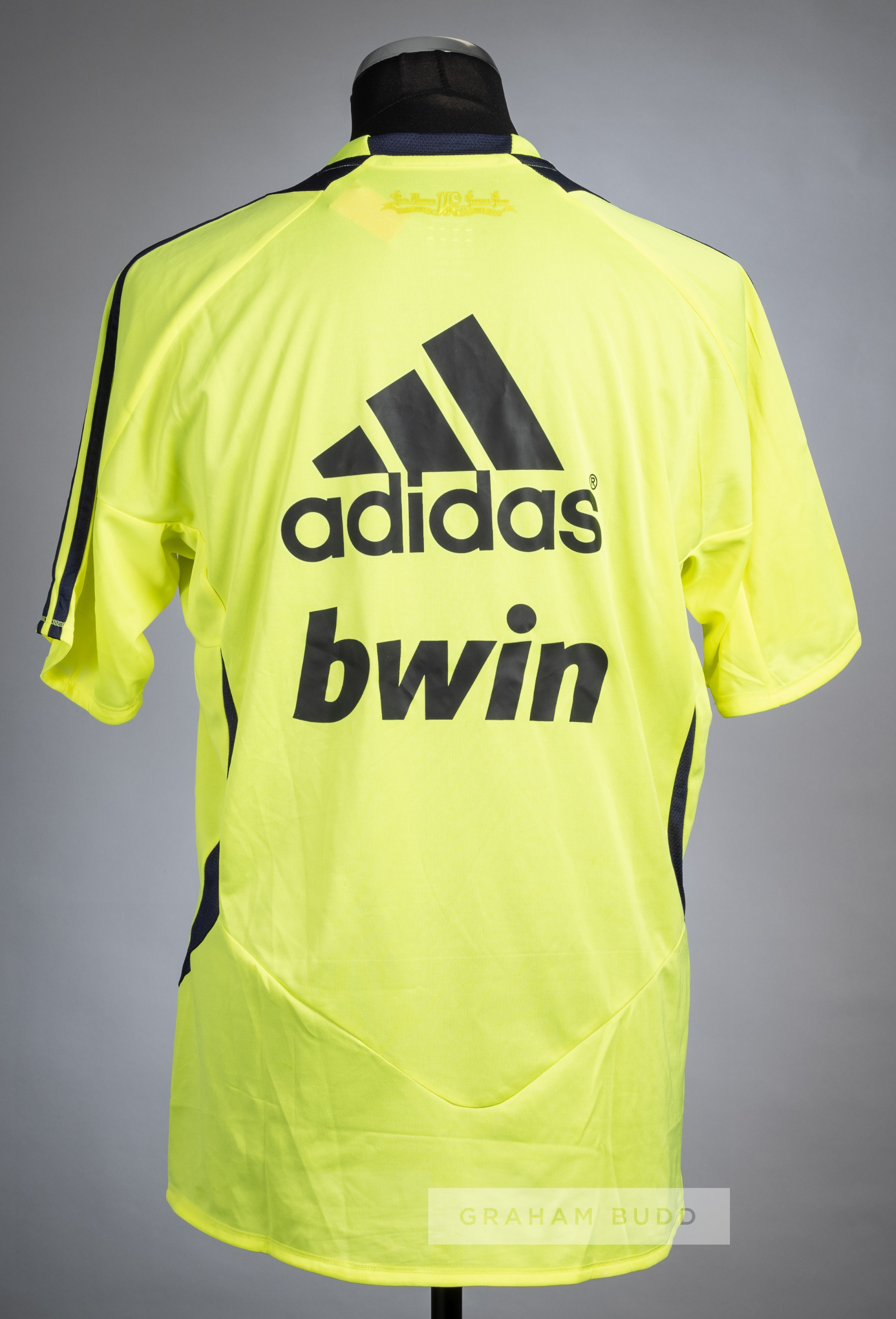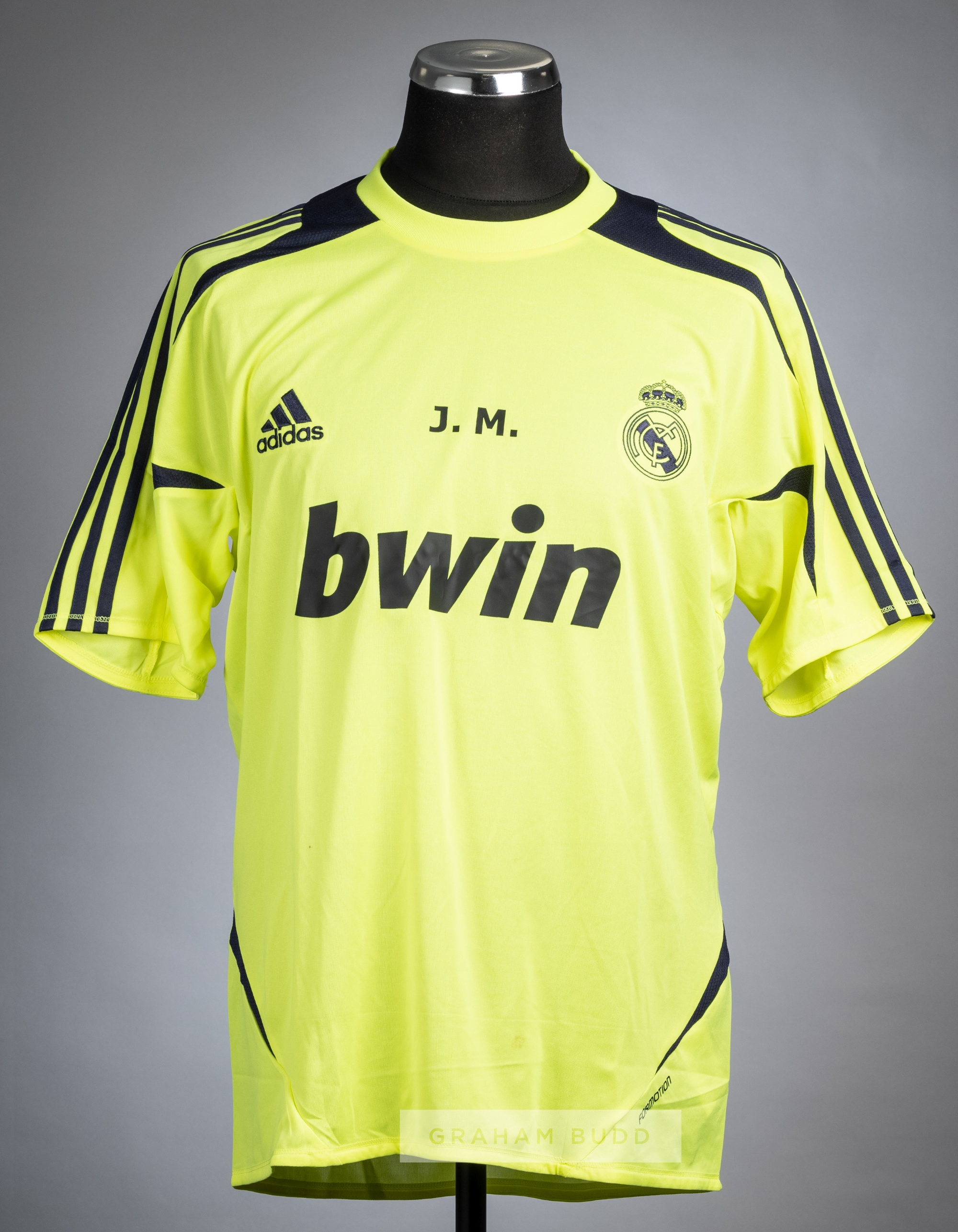 Jose Mourinho yellow Real Madrid training t-shirt, season 2010-11, Adidas, short-sleeved with embroidered club crest and J.M. printed on the front, reverse with Adidas and sponsor logo, bears tag JOSE MOURINHO REAL MADRID MGR TRAINING SHIRT SEASON 2010-11 A.THORBURN COLLECTION Provenance: from the Alasdair Thorburn collection