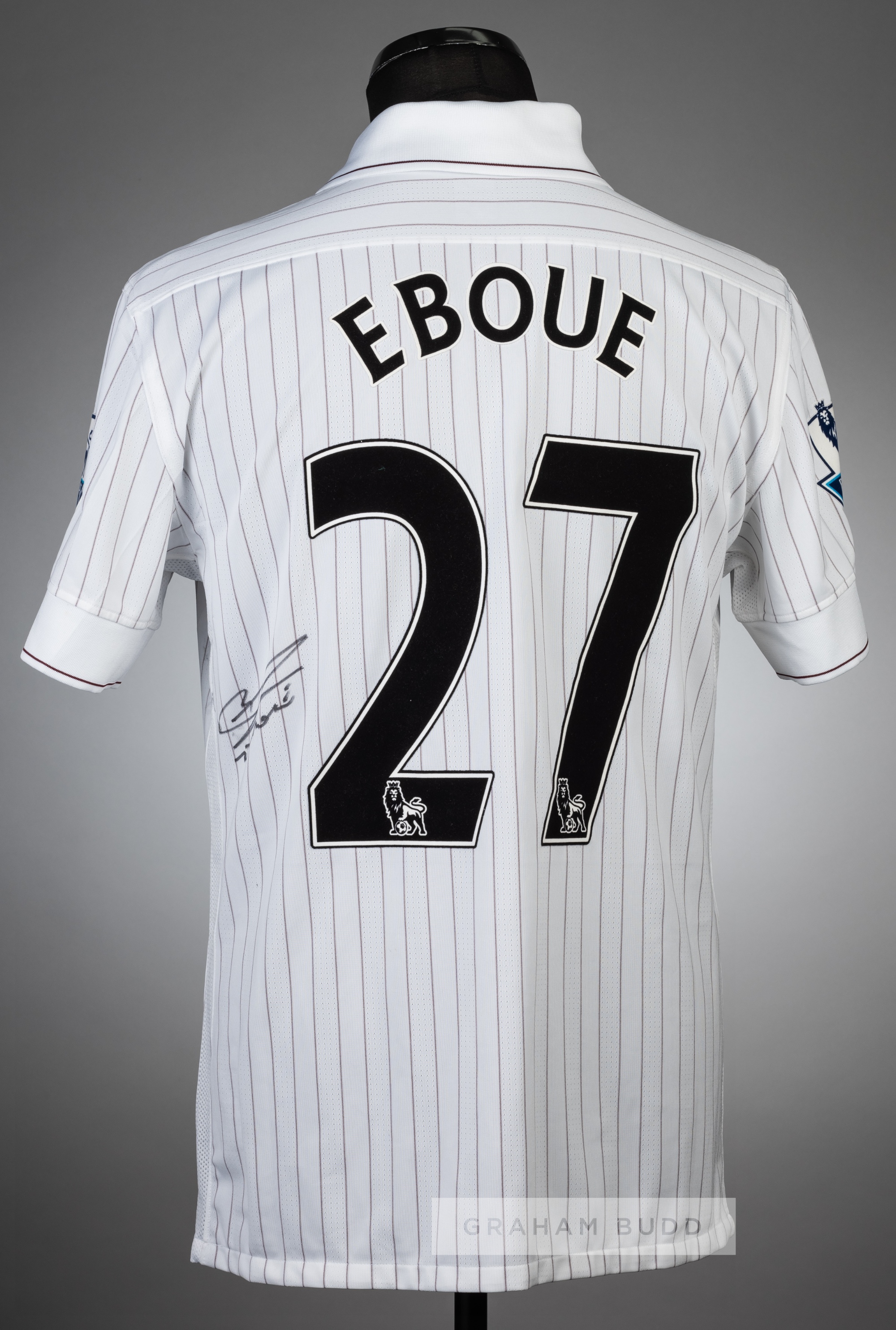 Three Arsenal jersey's, season's 2008-09, 2009-10 and 2014-15, comprising Emmanuel Eboue signed white and claret pinstripe Arsenal no.27 third choice