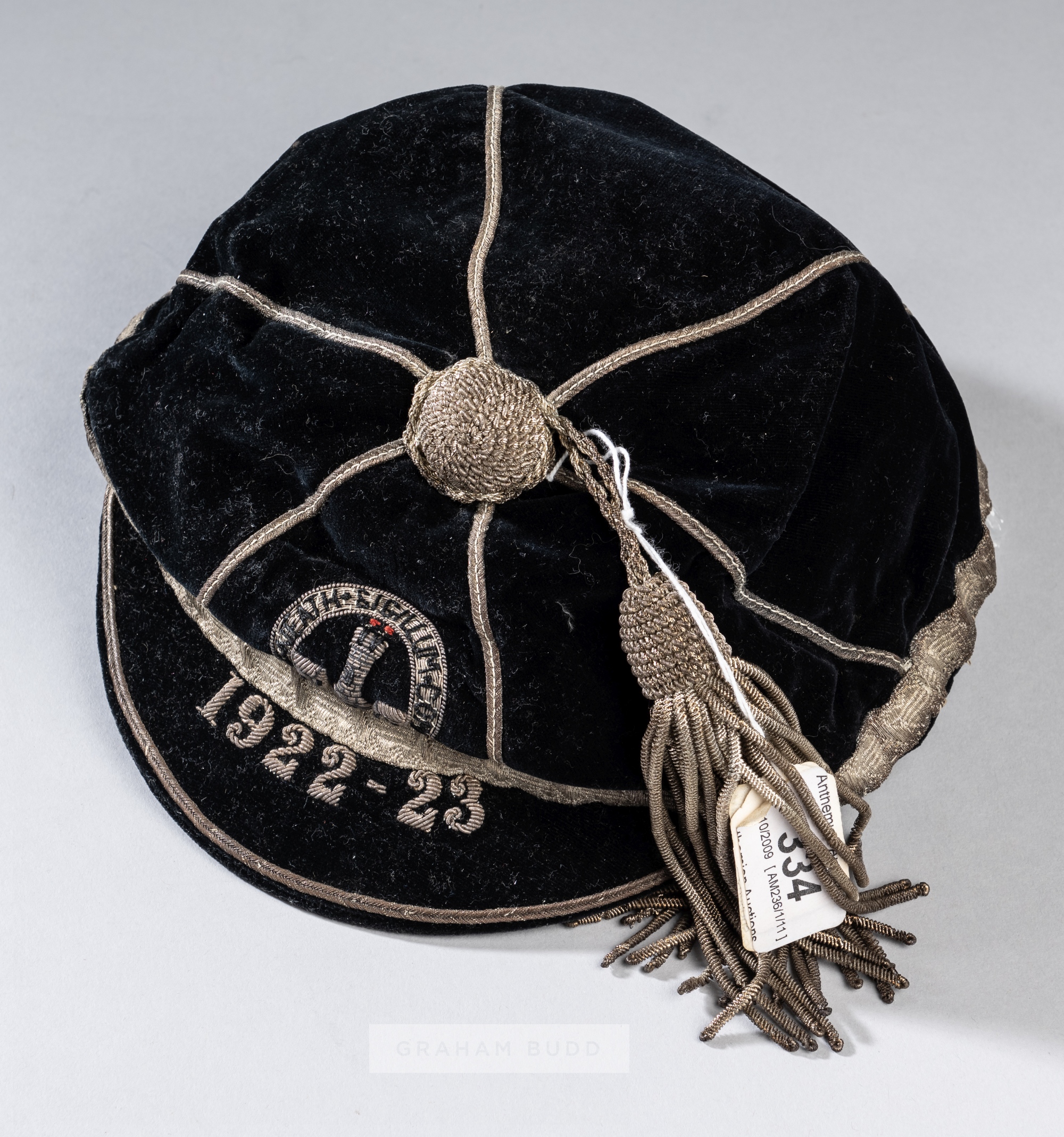 Neath Grammar School 1922-23 representative cap awarded to the Welsh Schoolboys' International and future Neath RFC player Griff Bevan, black velvet