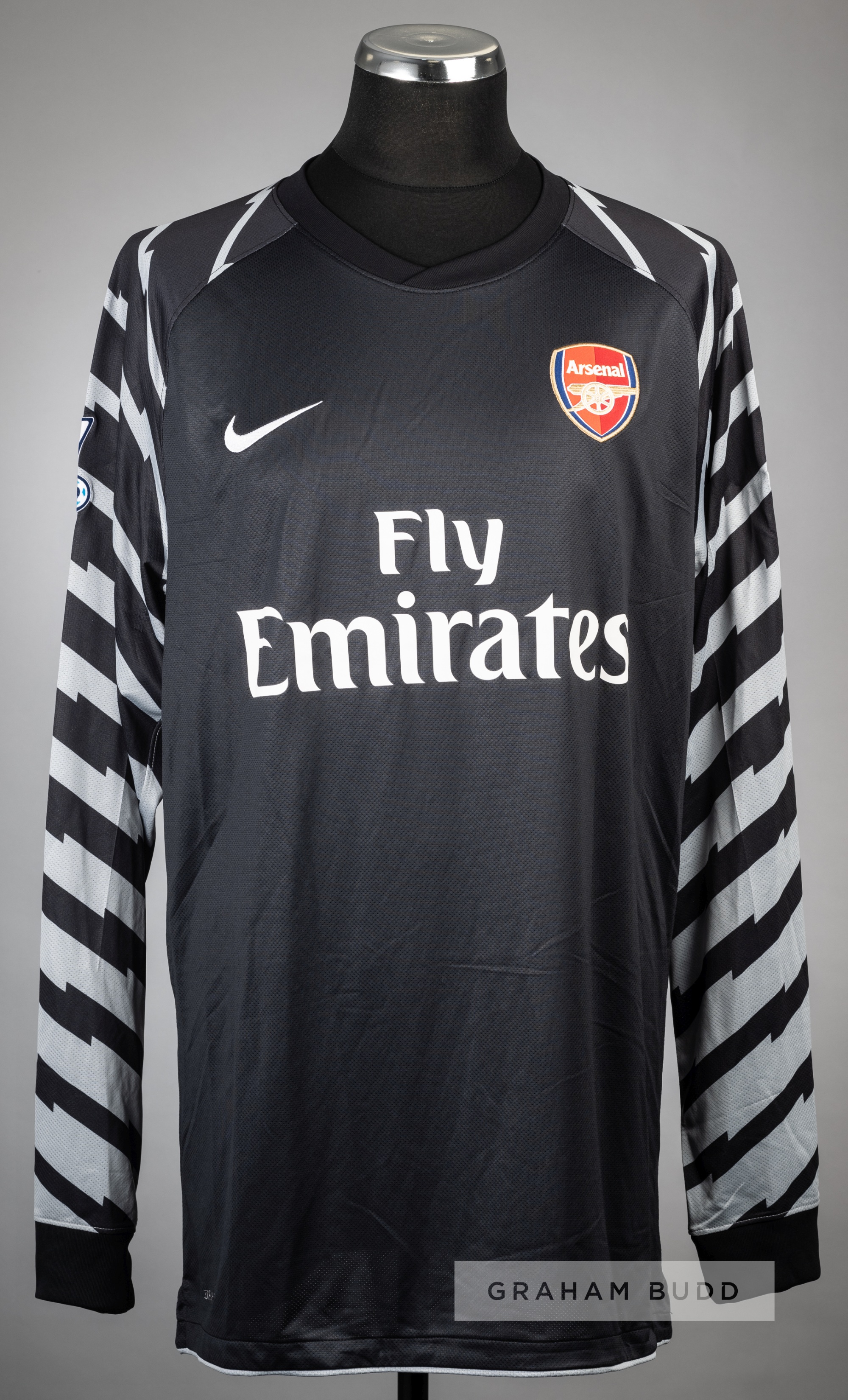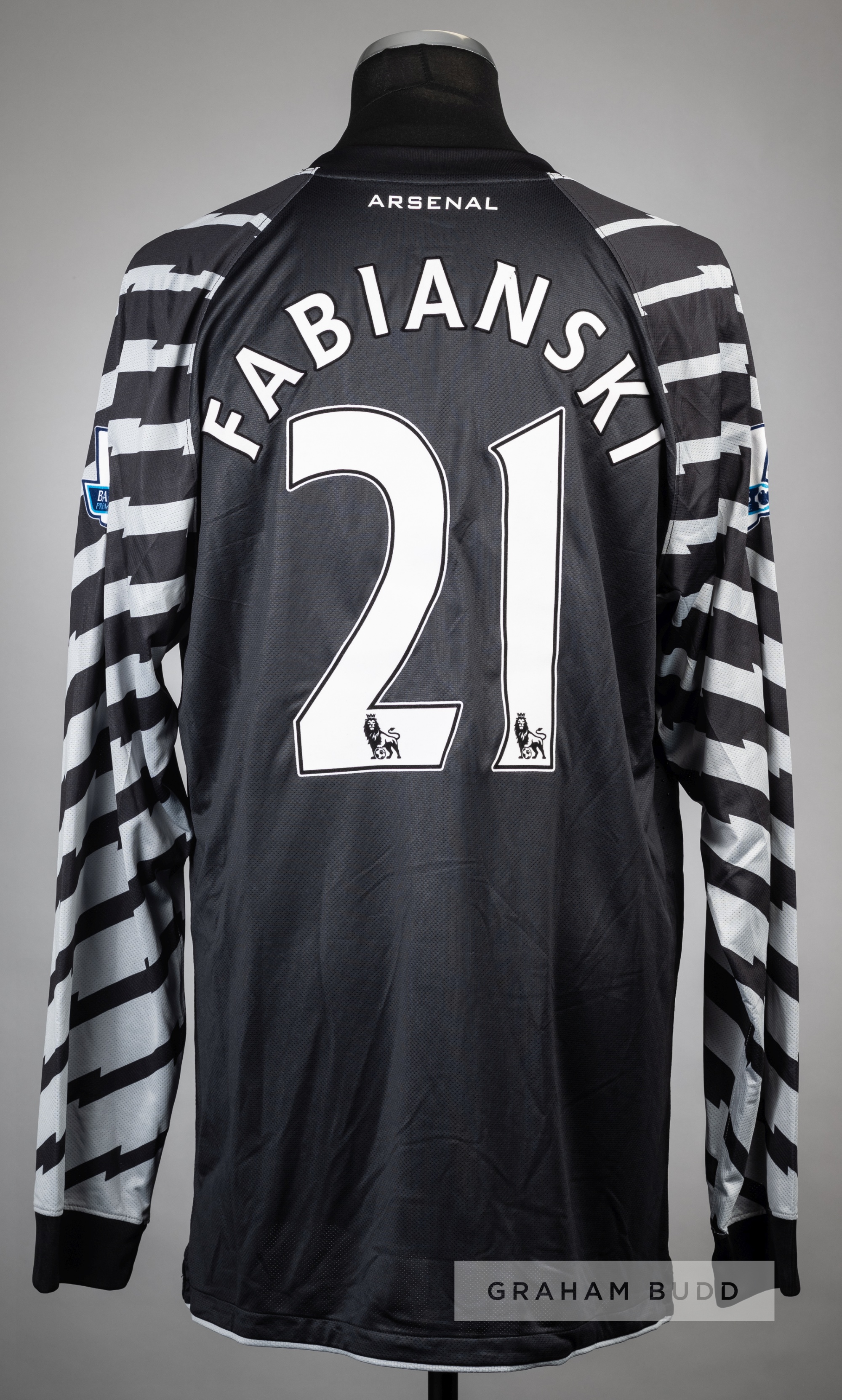 Lukasz Fabianski black & grey Arsenal no.21 goalkeeper's second choice jersey, season 2010-11, Nike, long-sleeved with BARCLAYS PREMIER LEAGUE sleeve badges, club crest ad sponsor logo, reverse lettered FABIANSKI