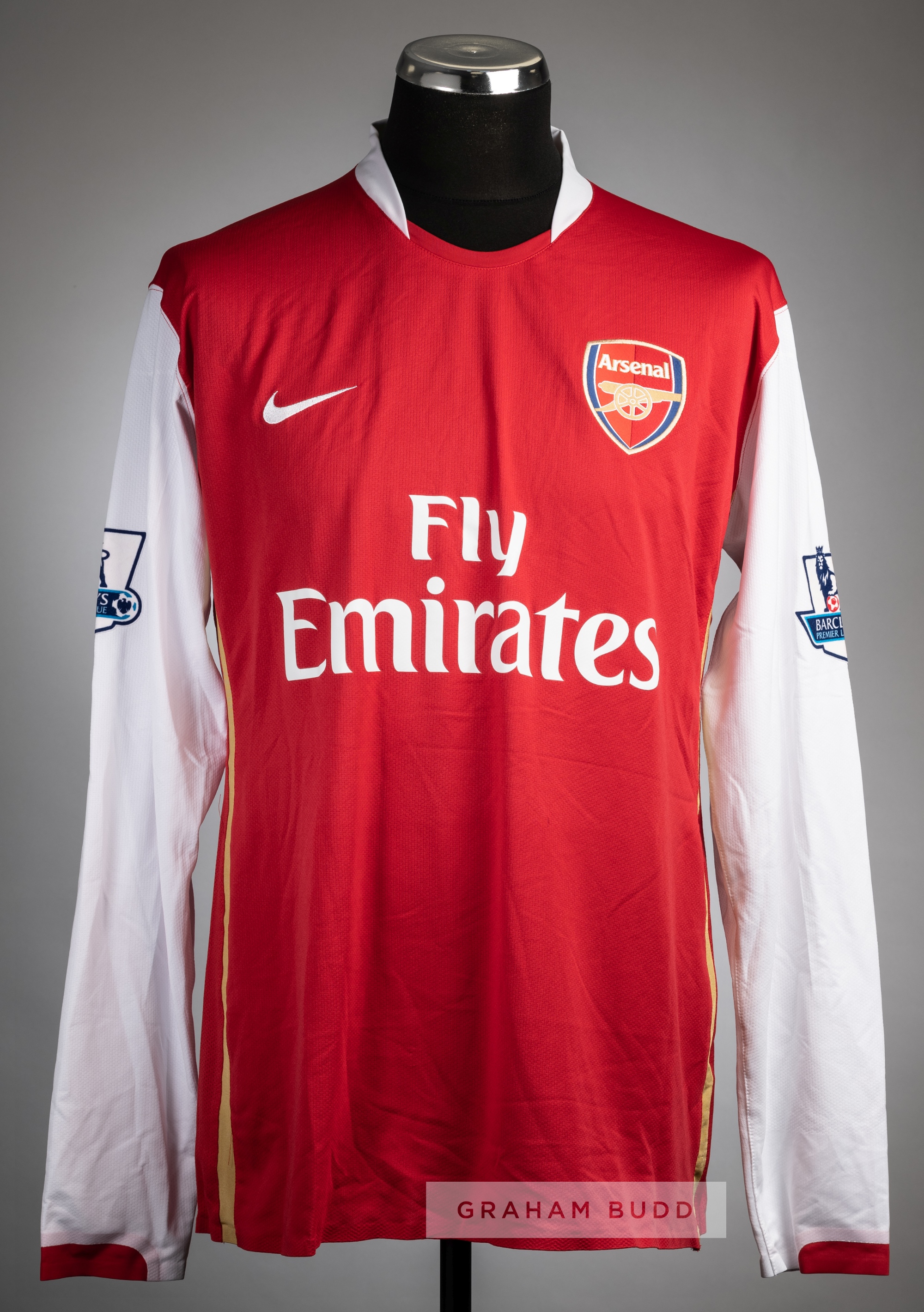Alex Song red Arsenal no.17 home jersey, circa 2007, Nike, long-sleeved with BARCLAYS PREMIER LEAGUE sleeve badges, club crest and sponsor logo, reve