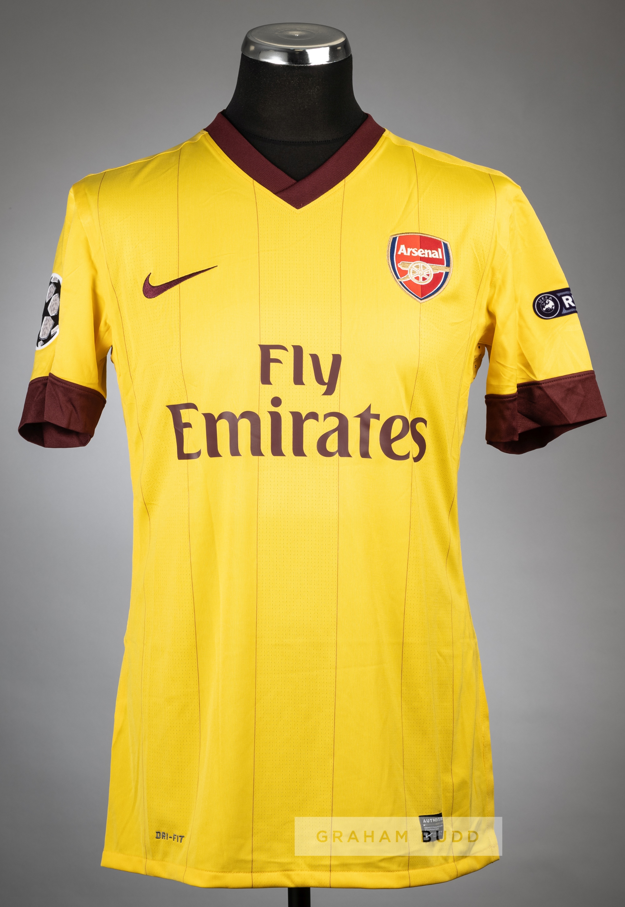Aaron Ramsey yellow and claret Arsenal UEFA Champions League no.16 jersey, season 2010-11, Nike, short-sleeved with UEFA STARBALL and RESPECT sleeve