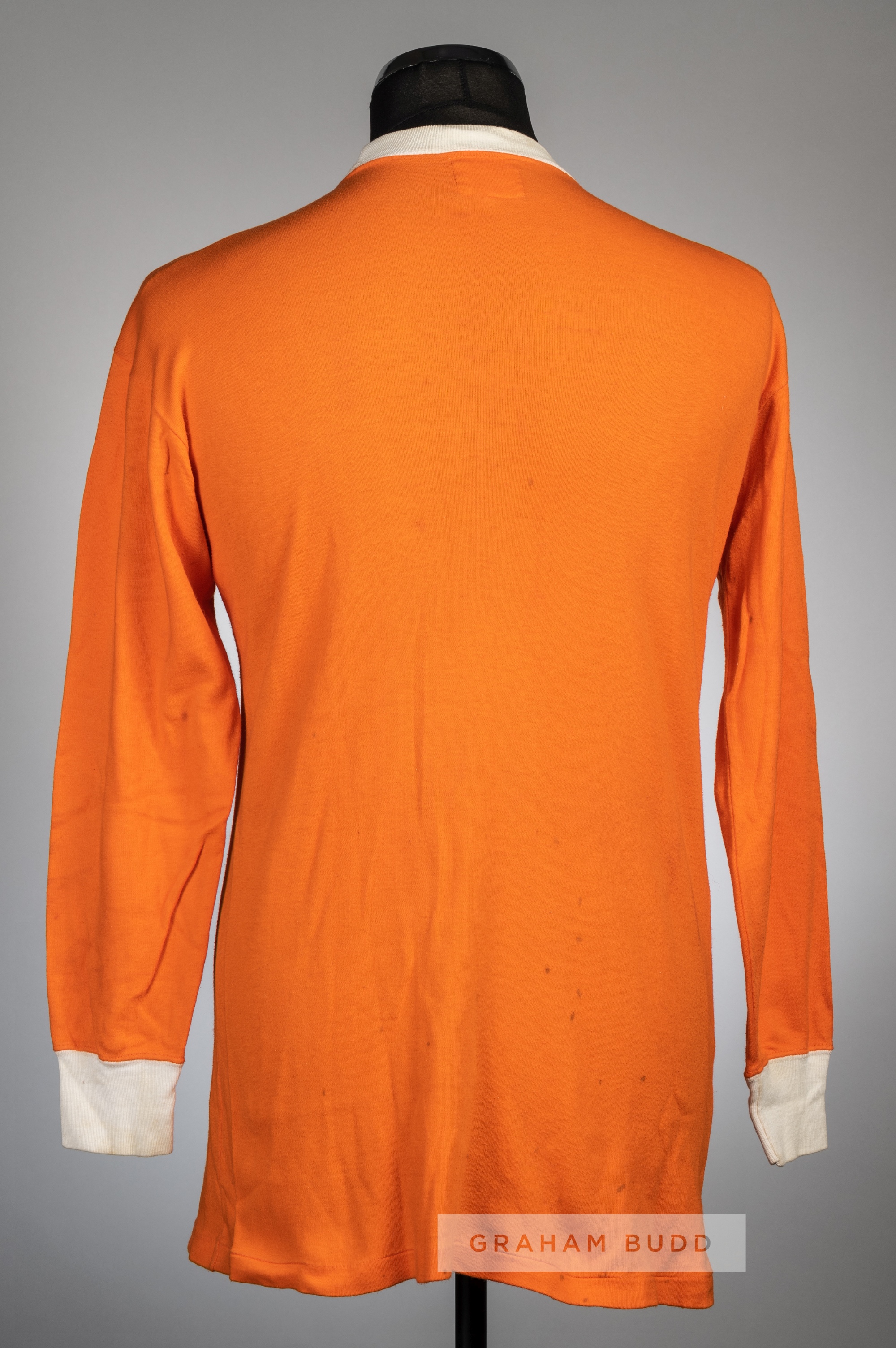 A tangerine Blackpool home jersey, circa 1966, Umbro, long-sleeved with club crest badge, unnumbered This is a Blackpool jersey dating from the mid-1960s, but appears to have been produced as a unnumbered emergency spare.