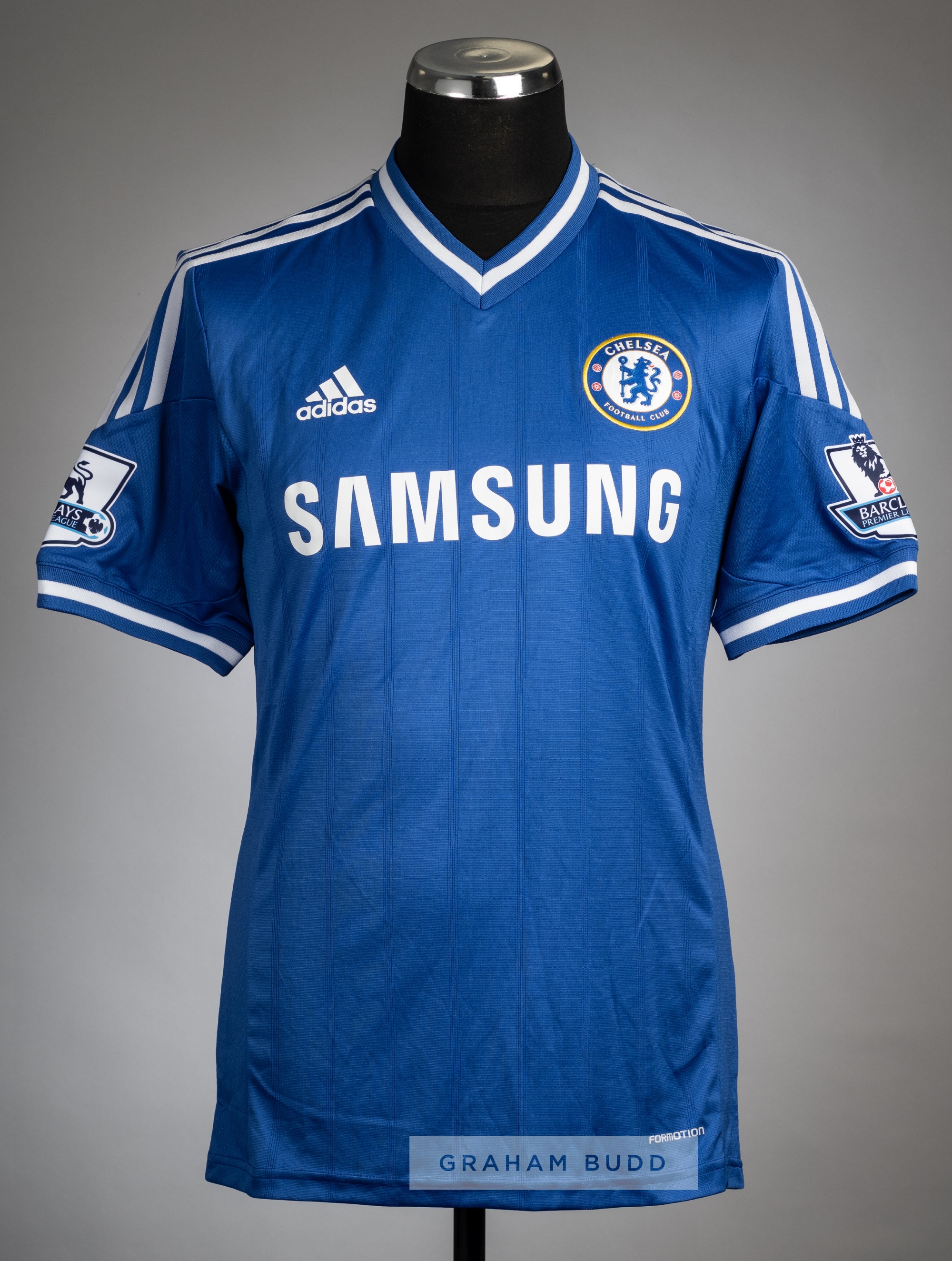 Cesar Azpilicueta signed blue Chelsea no.28 home jersey, season 2013-14, Adidas, short-sleeved with BARCLAYS PREMIER LEAGUE sleeve badges, club crest