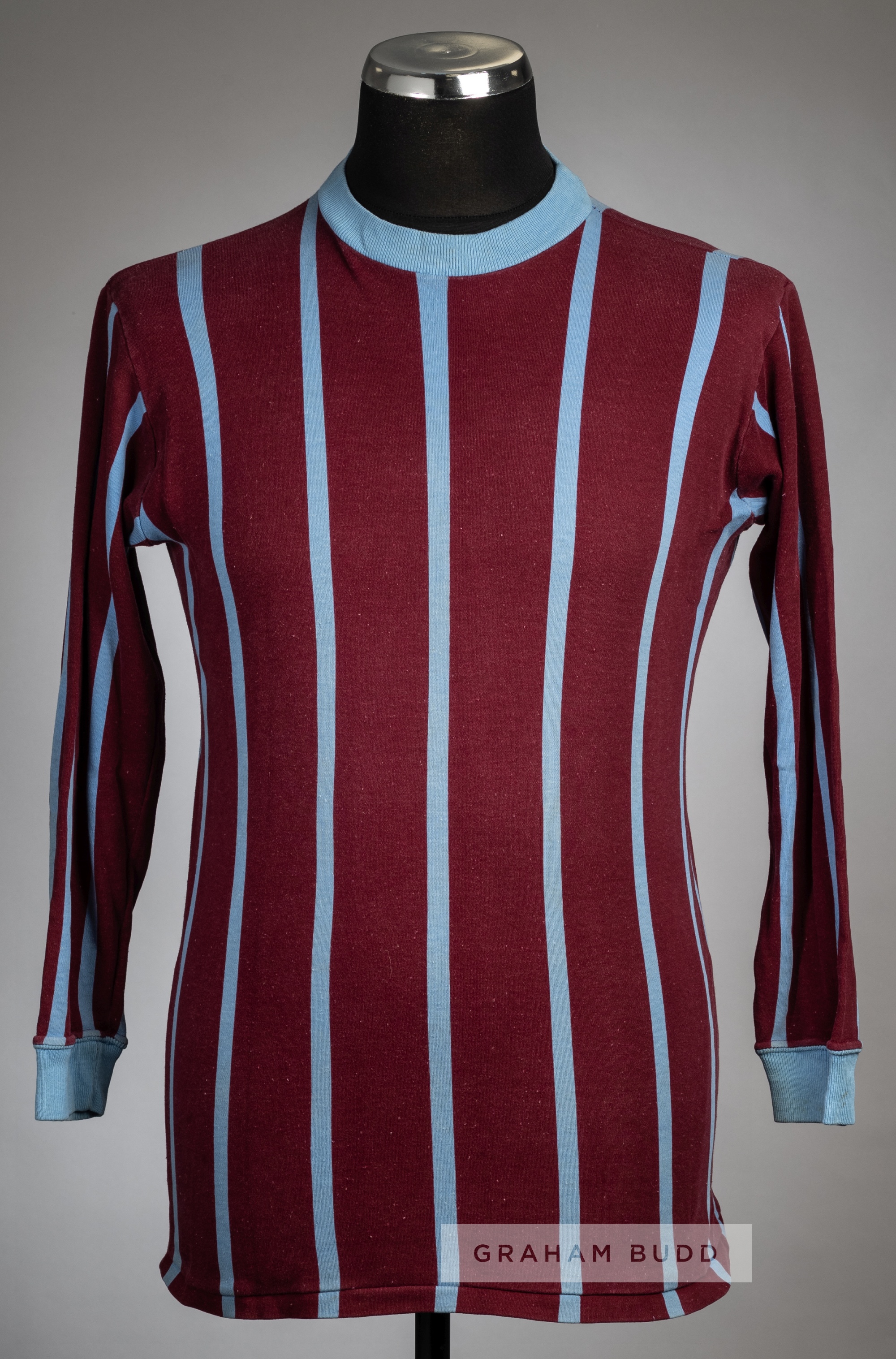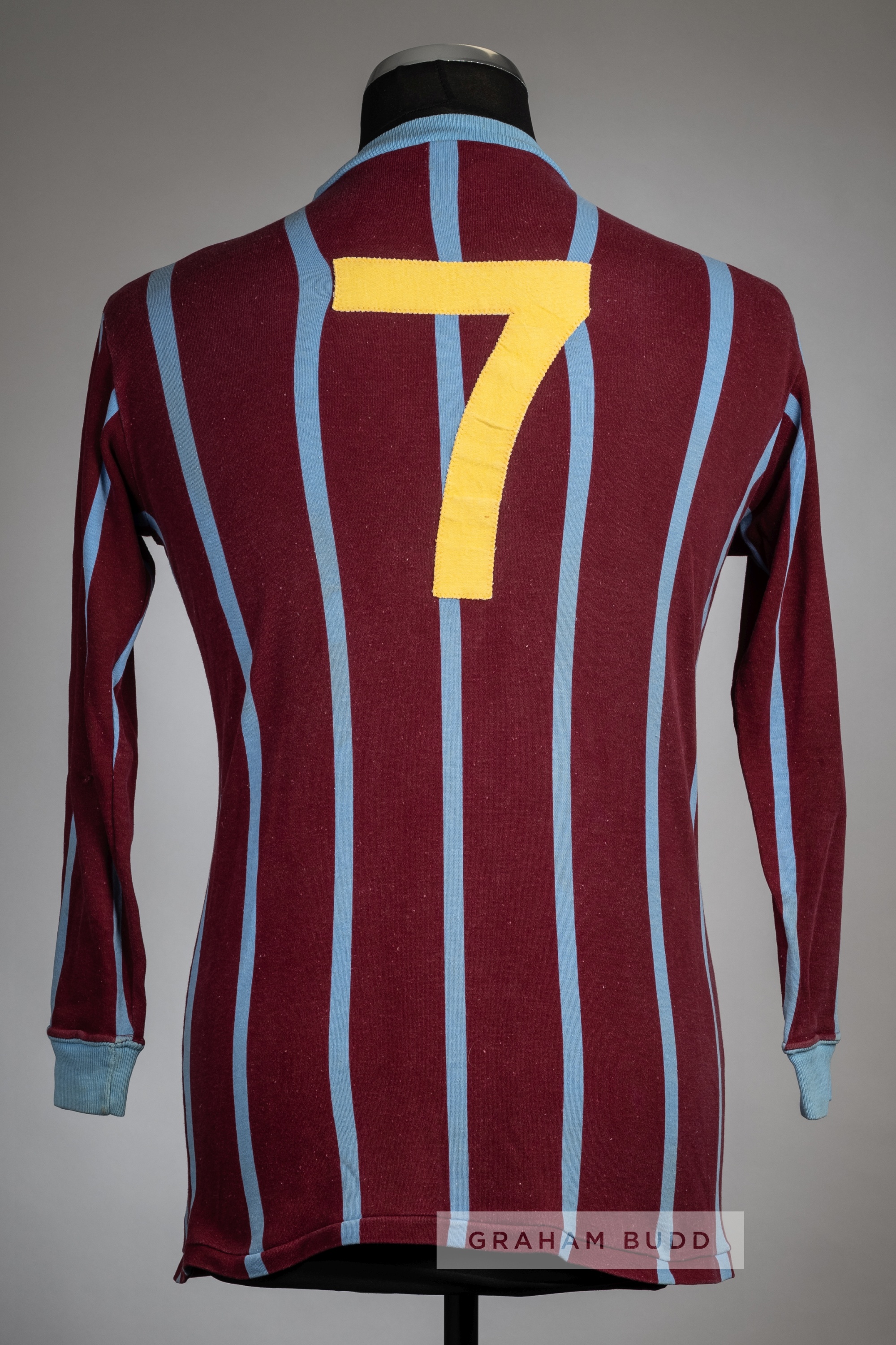 Claret & light blue stripe Crystal Palace no.7 home jersey, circa 1968, Umbro, long-sleeved, reverse numbered 7 in yellow felt