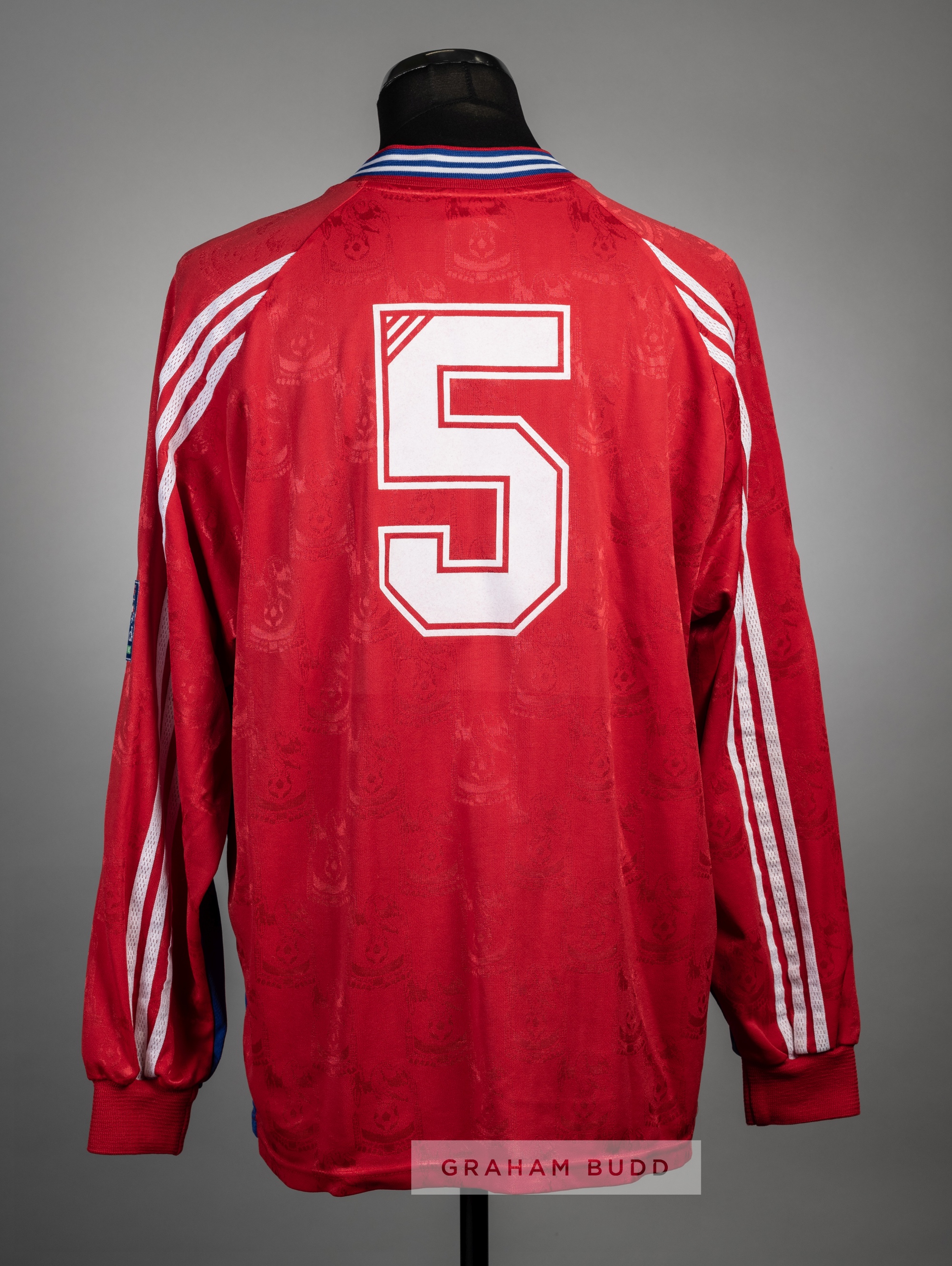 Fan Zhiyi red Crystal Palace no.5 home jersey, season 1998-99, Adidas, long-sleeved with NATIONWIDE FOOTBALL LEAGUE sleeved badges, club crest and sp