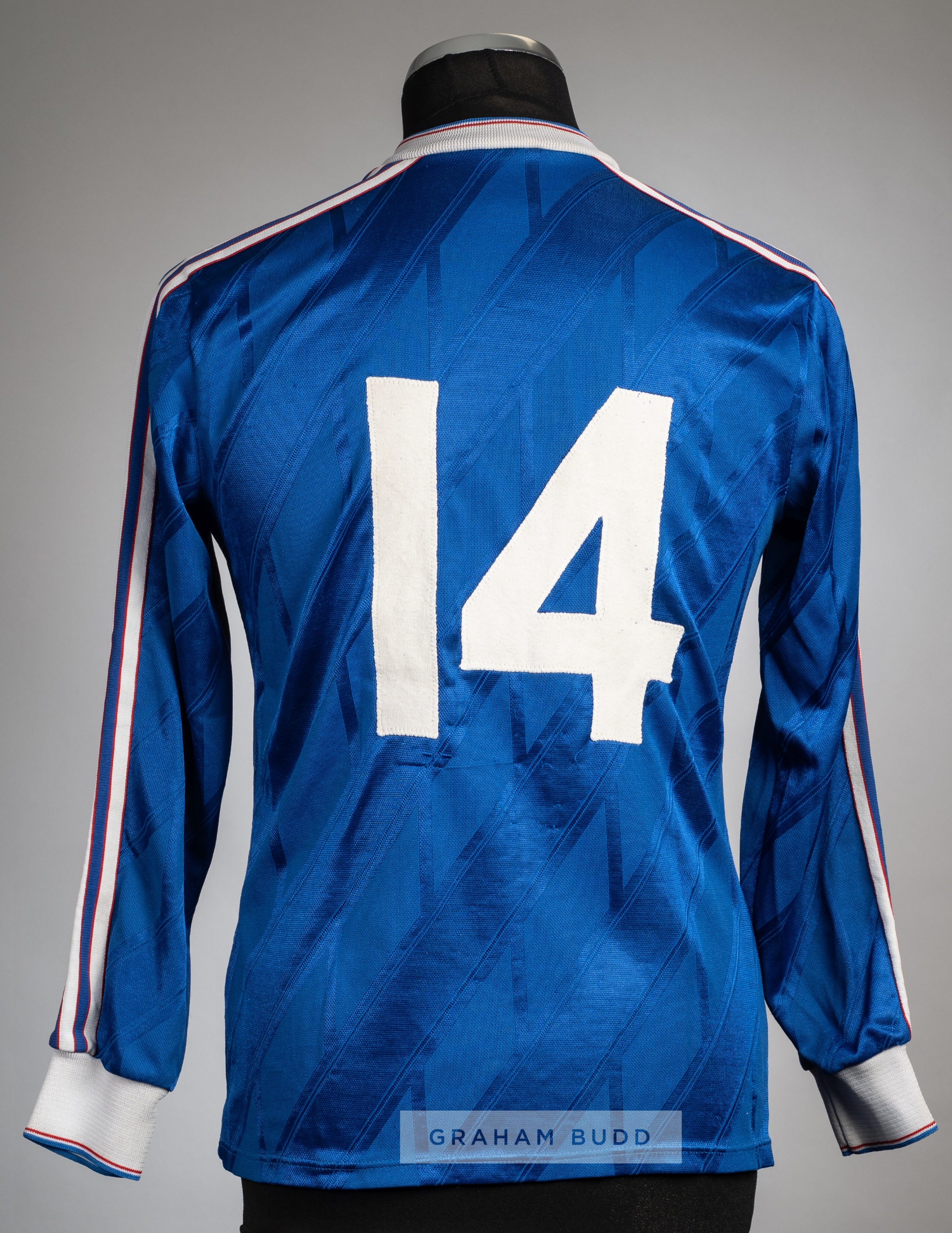 Blue Ipswich Town Centenary Year No.14 substitute's home jersey, season 1988-89, Adidas, long-sleeved with embroidered club crest and 1988 CENTENARY SEASON 1989, reverse numbered 14
