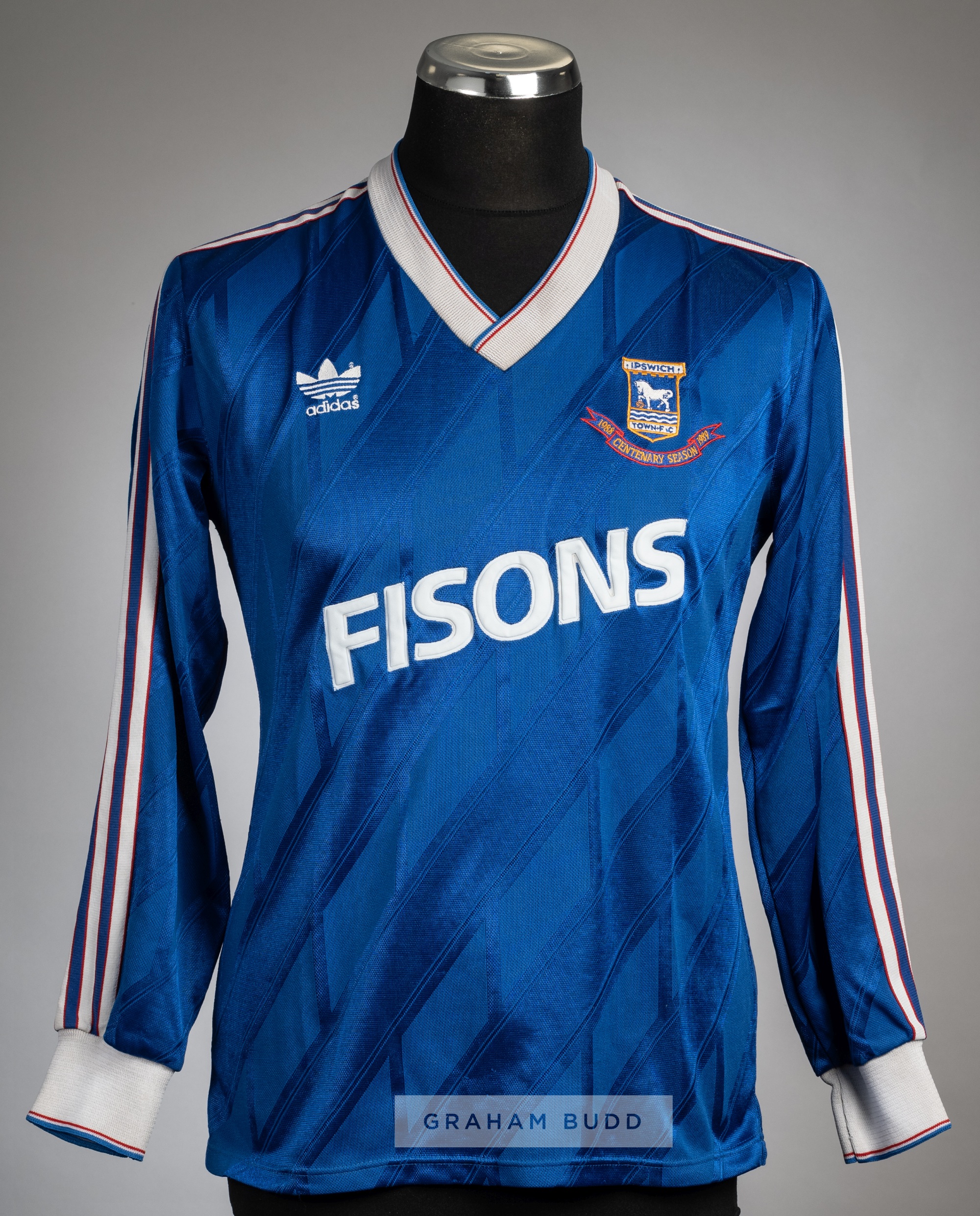 Blue Ipswich Town Centenary Year No.14 substitute's home jersey, season 1988-89, Adidas, long-sleeved with embroidered club crest and 1988 CENTENARY