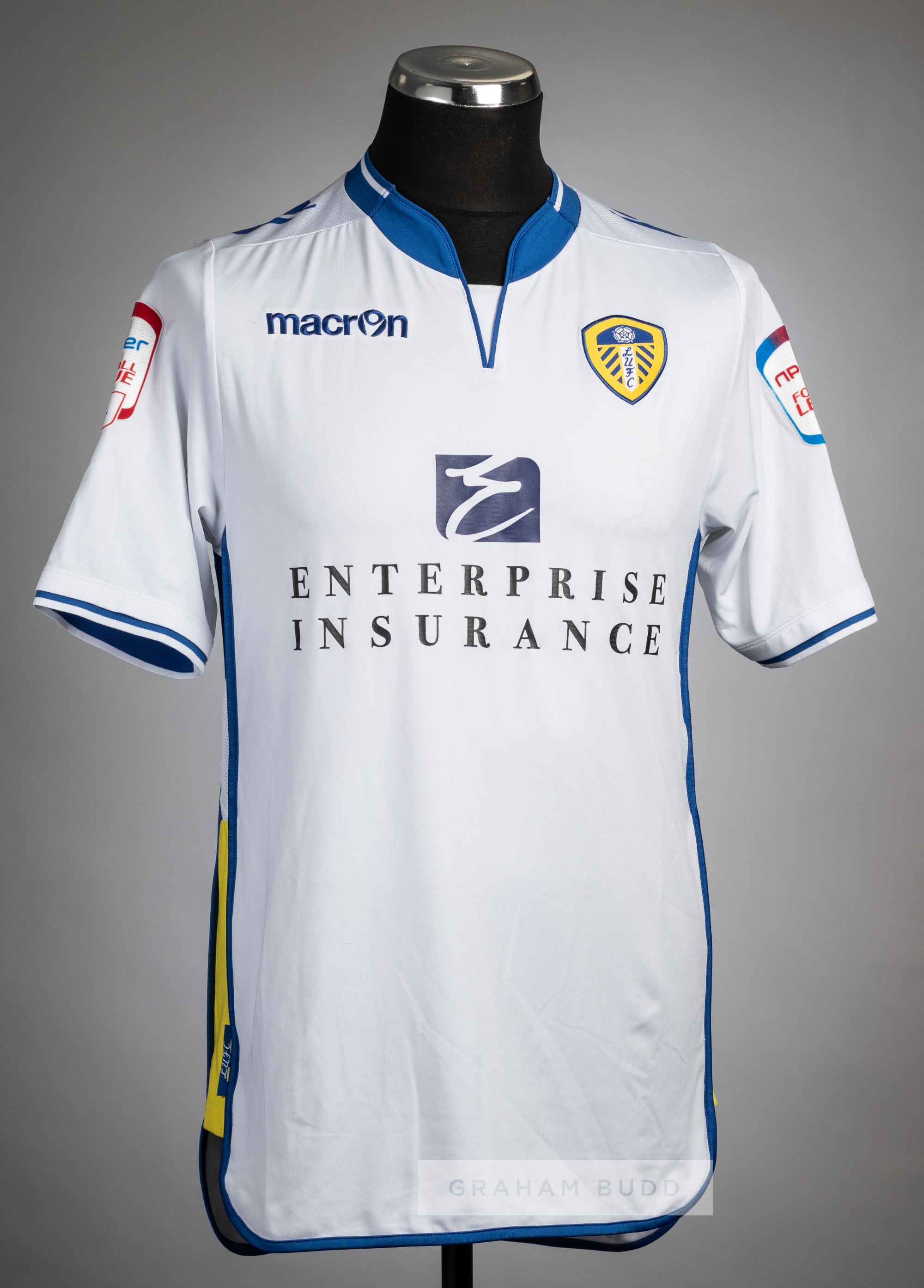 Ross McCormack white Leeds United no.44 home jersey, season 2012-13, Macron, short-sleeved with NPOWER FOOTBALL LEAGUE sleeve badges club crest badge
