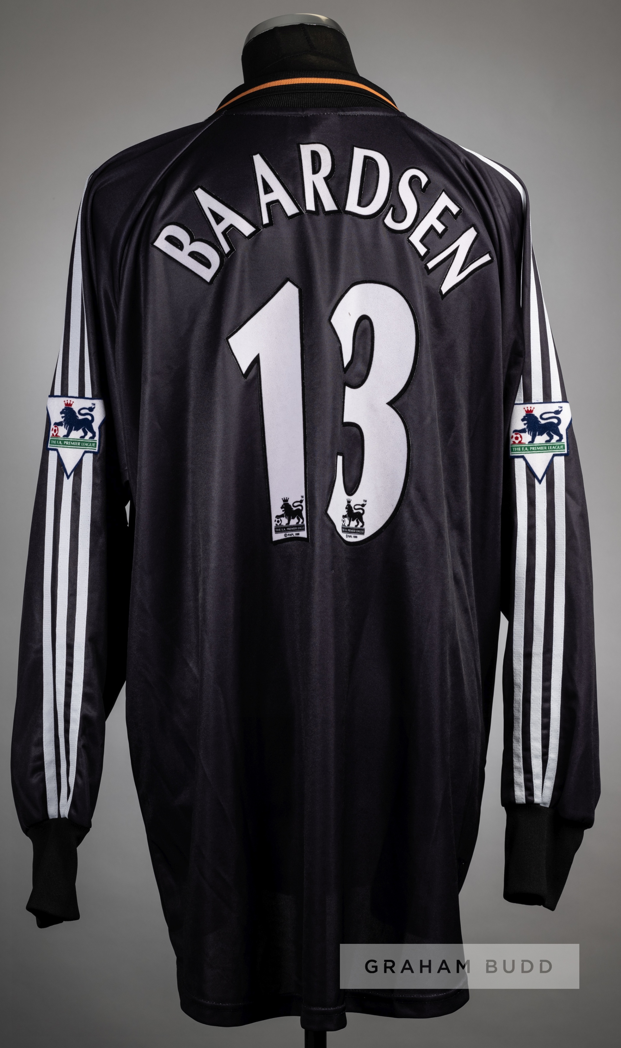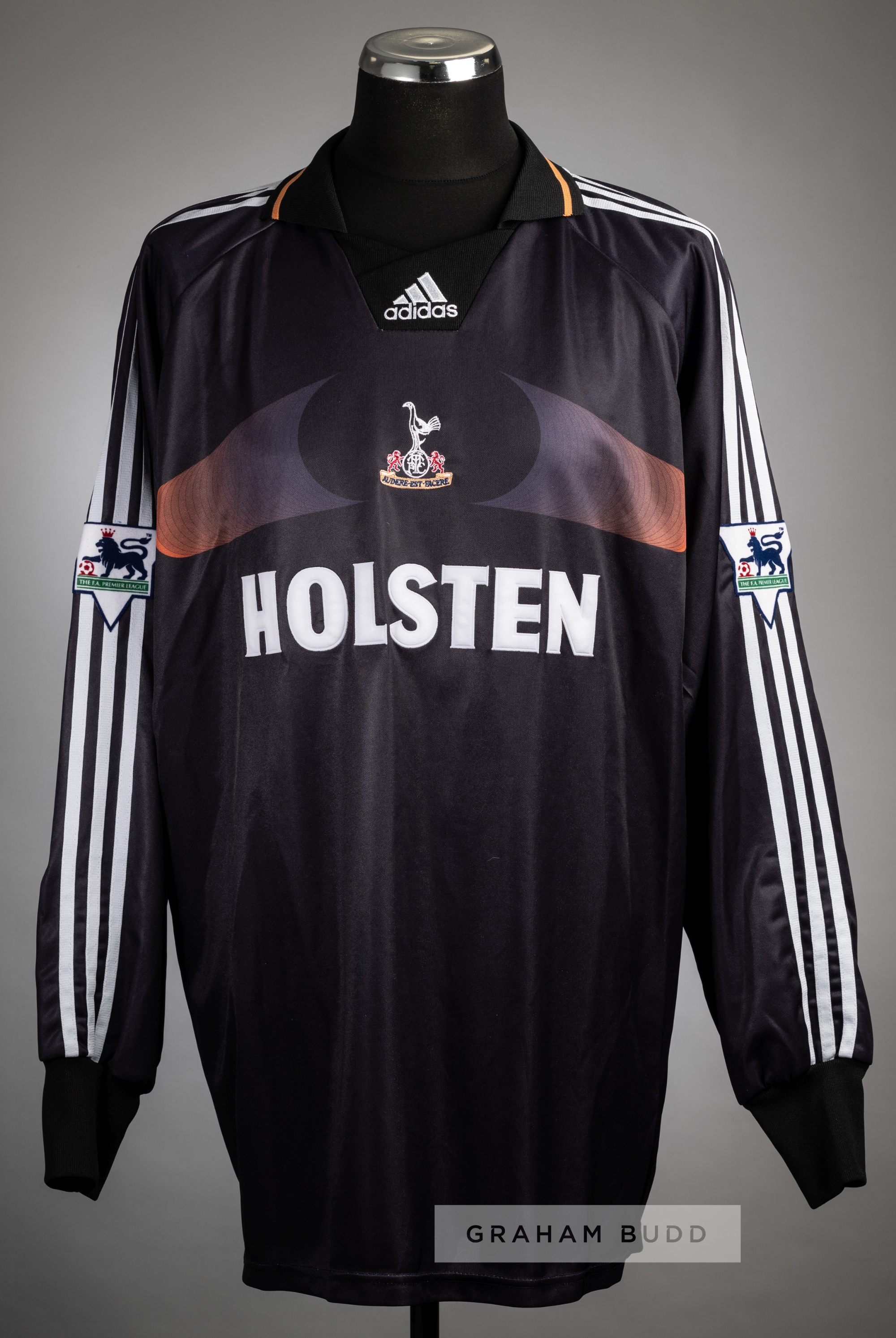 Espen Baardsen black Tottenham Hotspur no.13 goalkeeper's home jersey, season 1999- 2000, Adidas, long-sleeved with THE FA PREMIER LEAGUE sleeve badges, club crest and sponsor logo, reverse lettered BAARDSEN