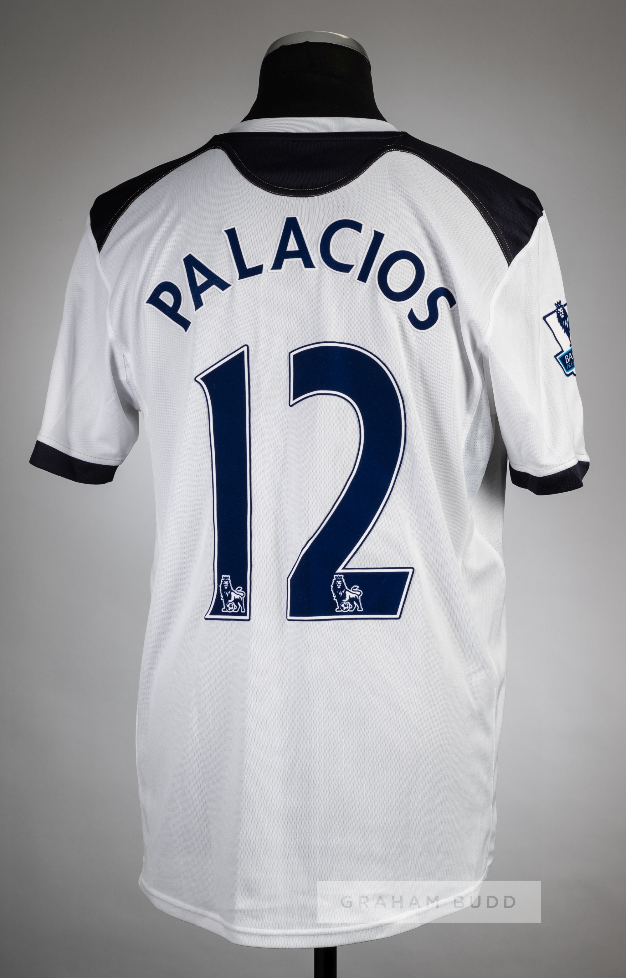 Squad signed Wilson Palacios white Tottenham Hotspur no.12 home jersey, season 2010-11, Puma, short-sleeved with BARCLAYS PREMIER LEAGUE sleeve badge