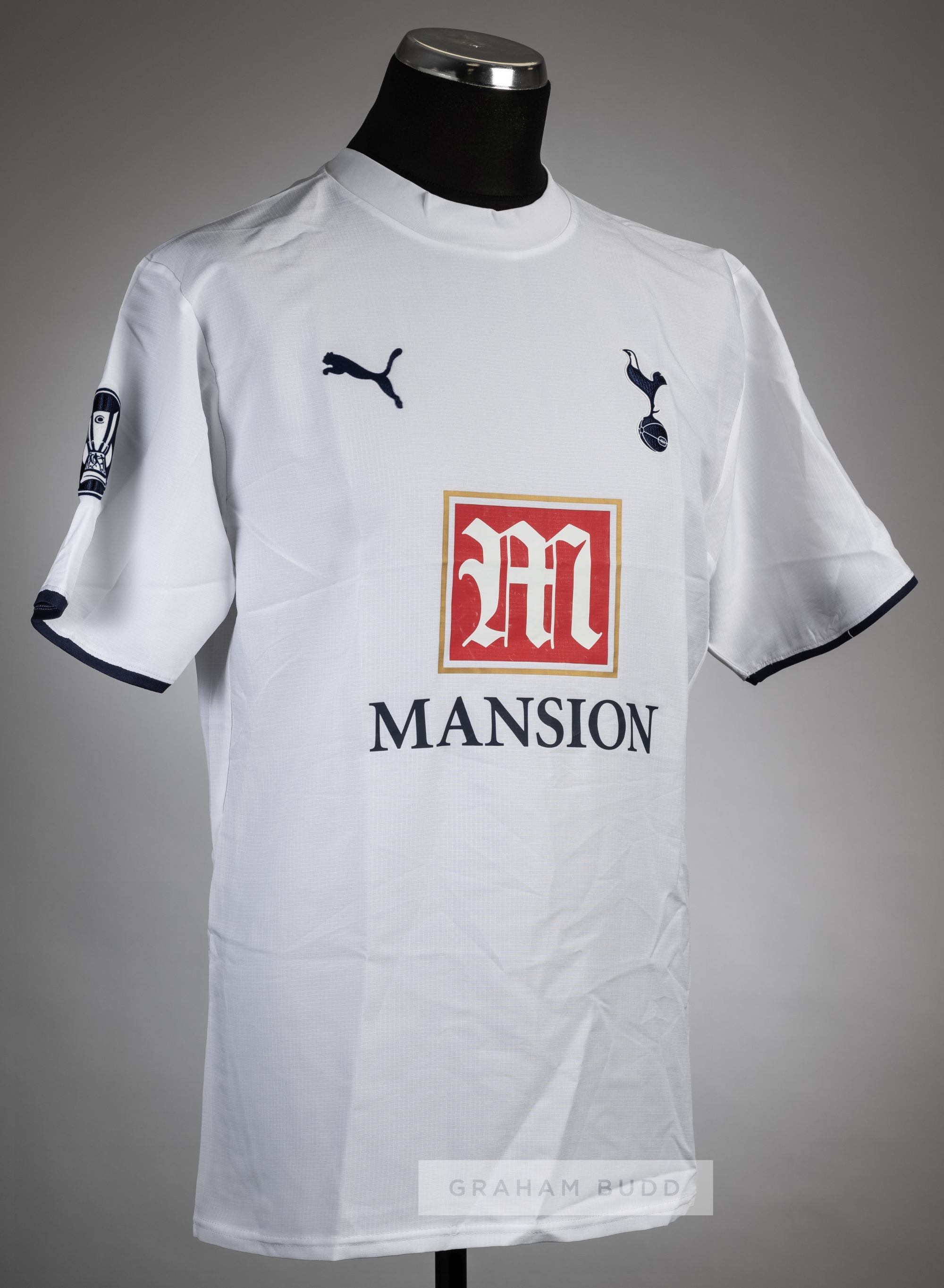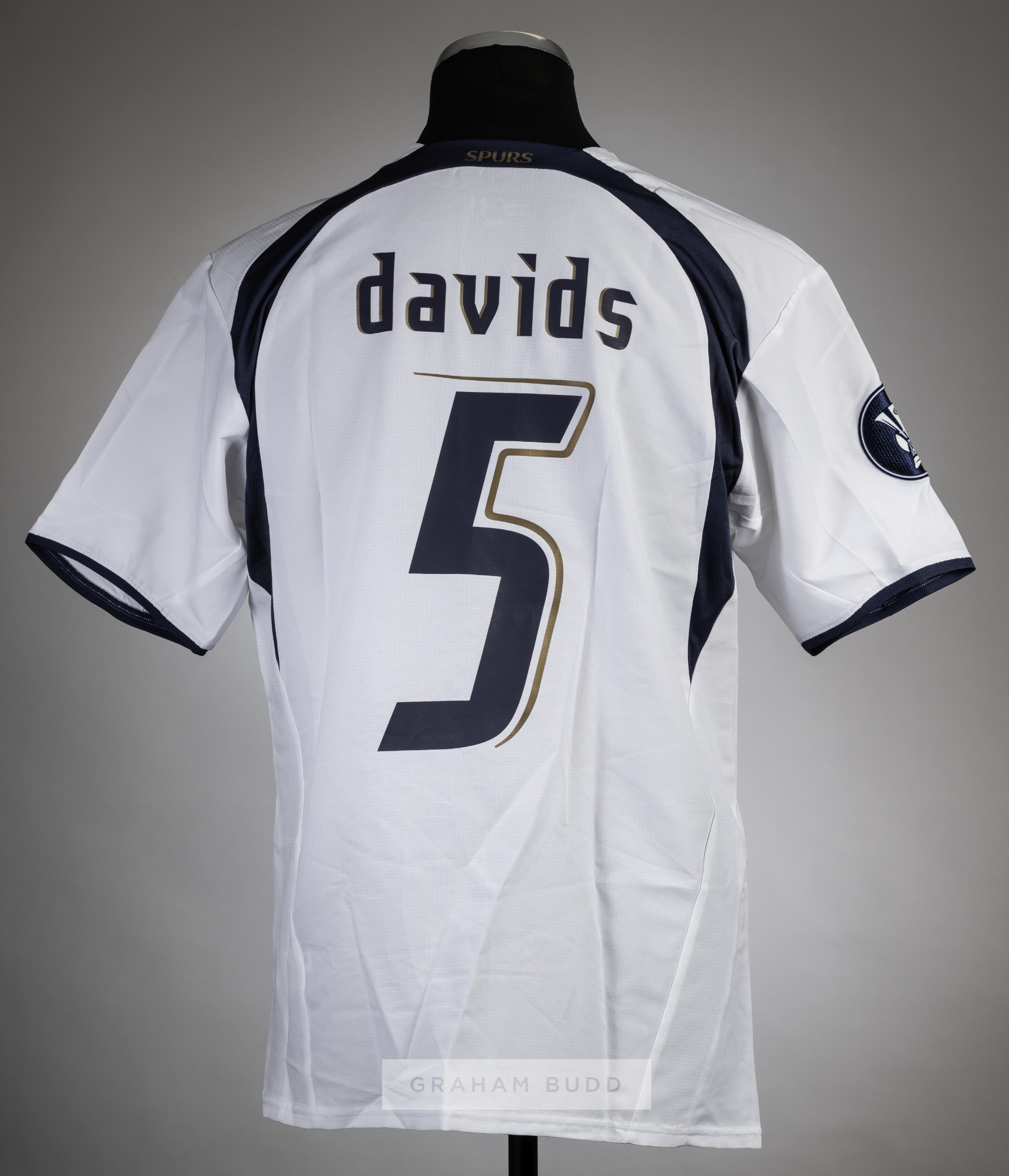 Edgar Davids white Tottenham Hotspur UEFA Cup no.5 home jersey, season 2006-07, Puma, short-sleeved with UEFA CUP sleeve badge, club crest and sponsor logo, reverse lettered DAVIDS