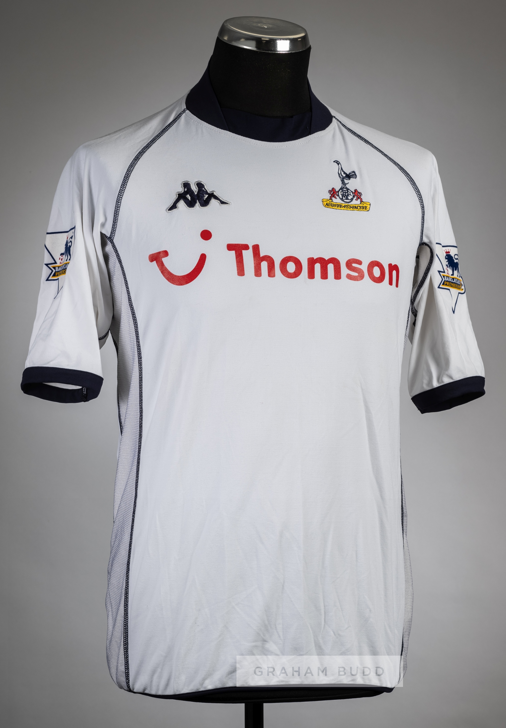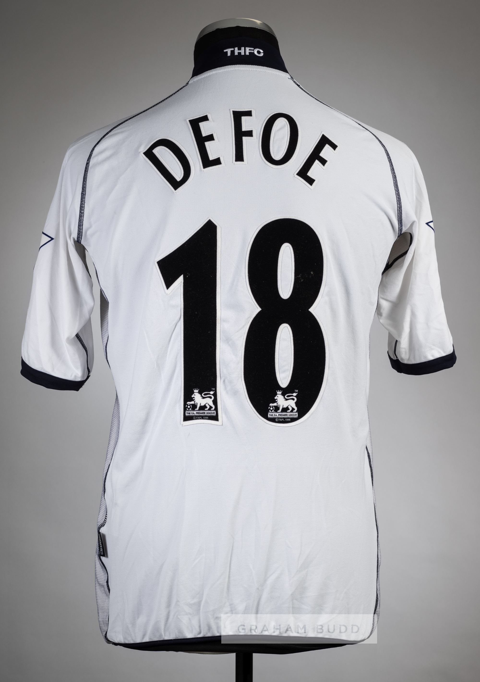 Jermain Defoe white Tottenham Hotspur no.18 home jersey v Arsenal played at white Hart Lane, 25th April 2004, Kappa, short-sleeved with BARCLAYCARD PREMIERSHIP sleeve badges, club crest and sponsor logo This fixture resulted in a 2-2 draw with Jermain Defoe substitute on in the 46th minute.