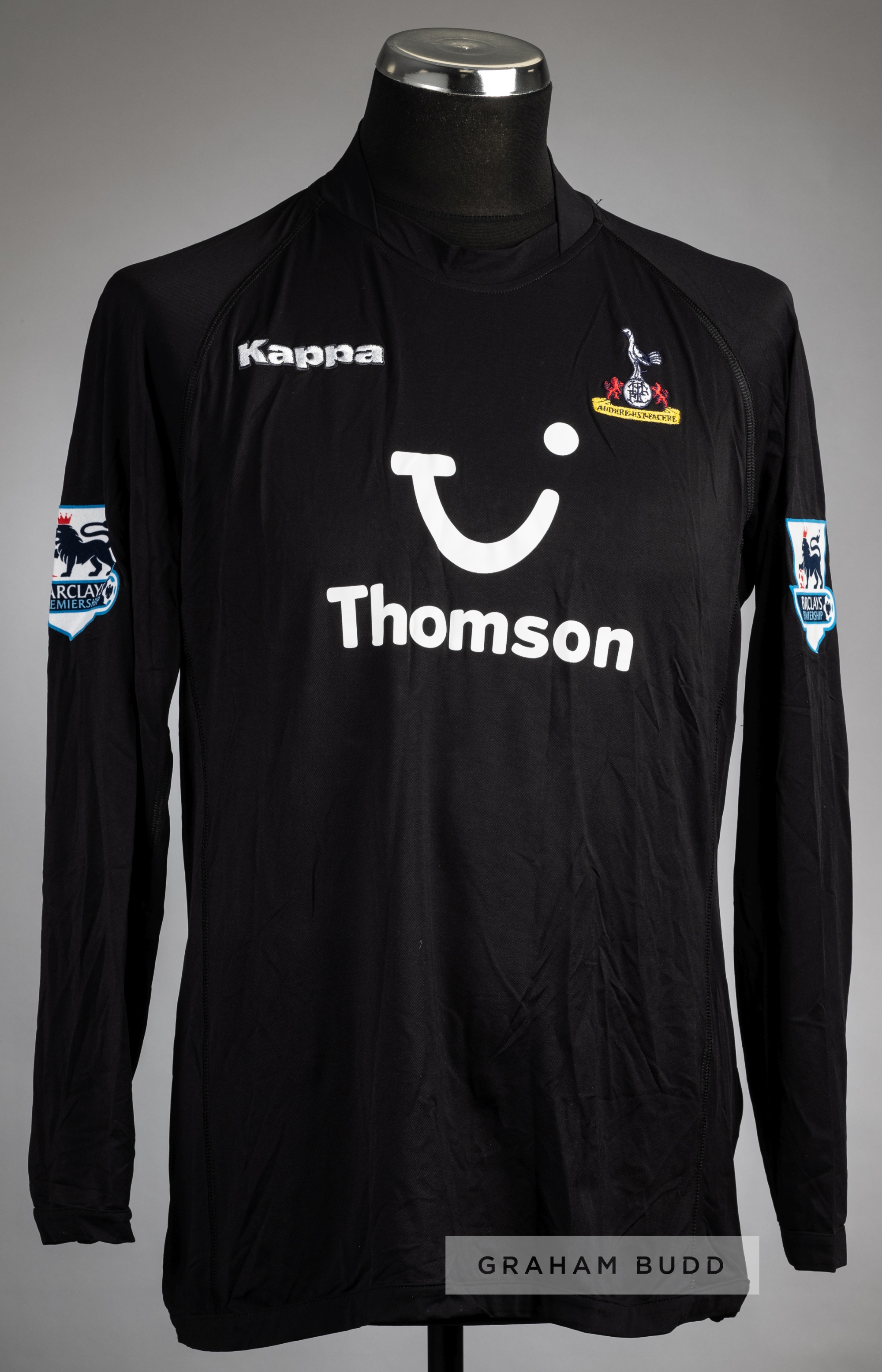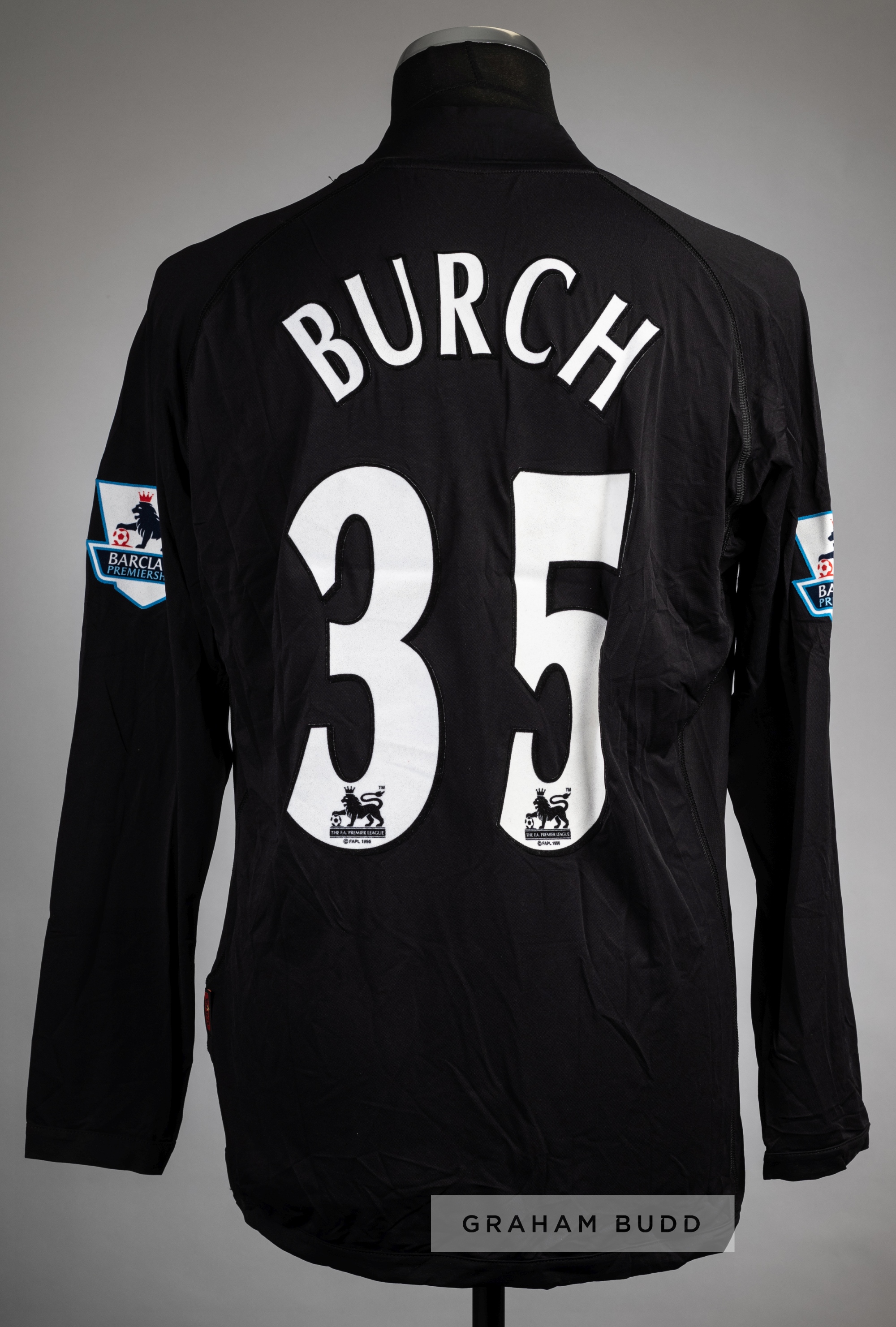 Rob Burch black Tottenham Hotspur no.35 goalkeeper's jersey, season 2005-06, Kappa, long-sleeved with BARCLAYS PREMIERSHIP sleeve badges, club crest and sponsor logo, reverse lettered BURCH