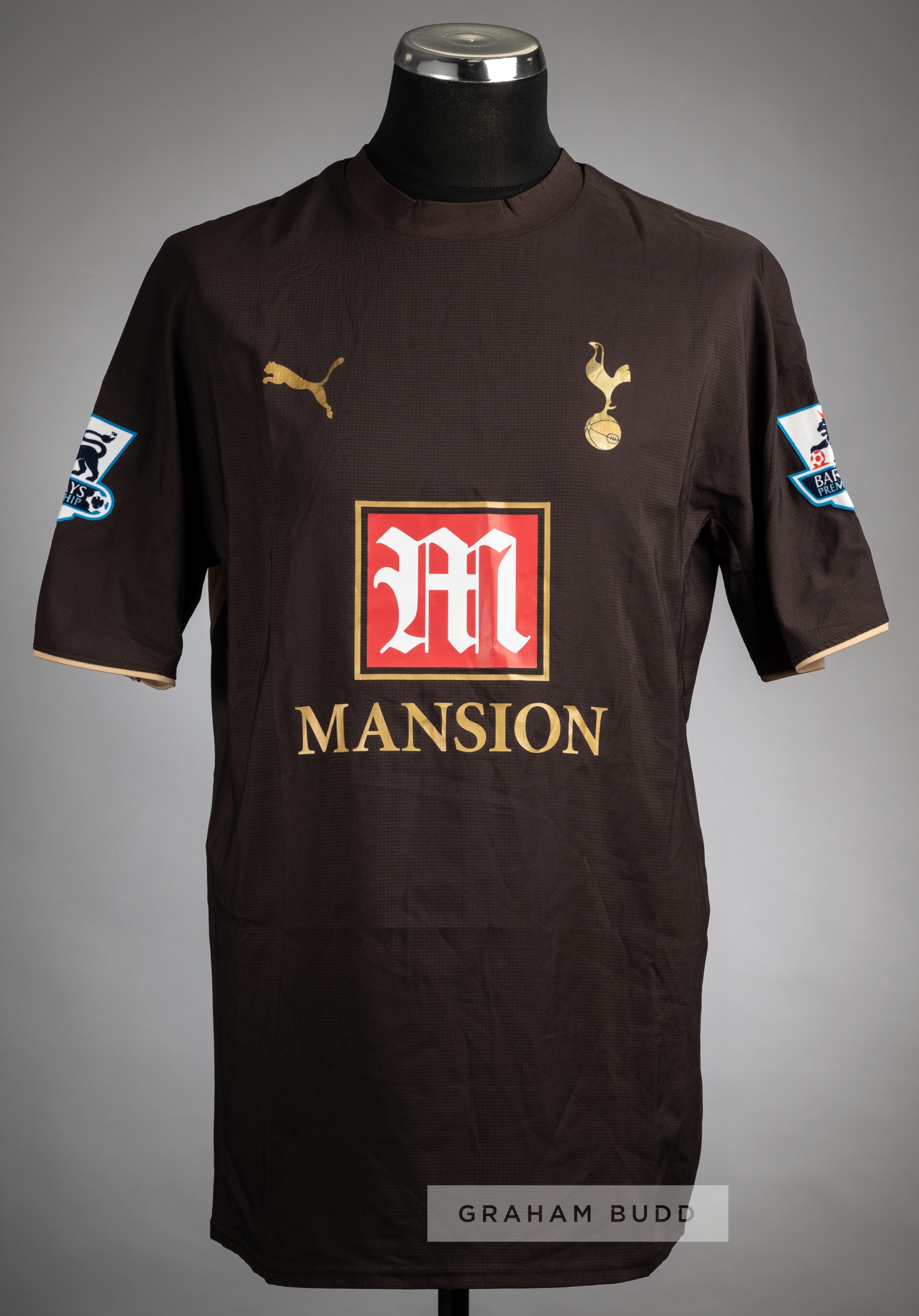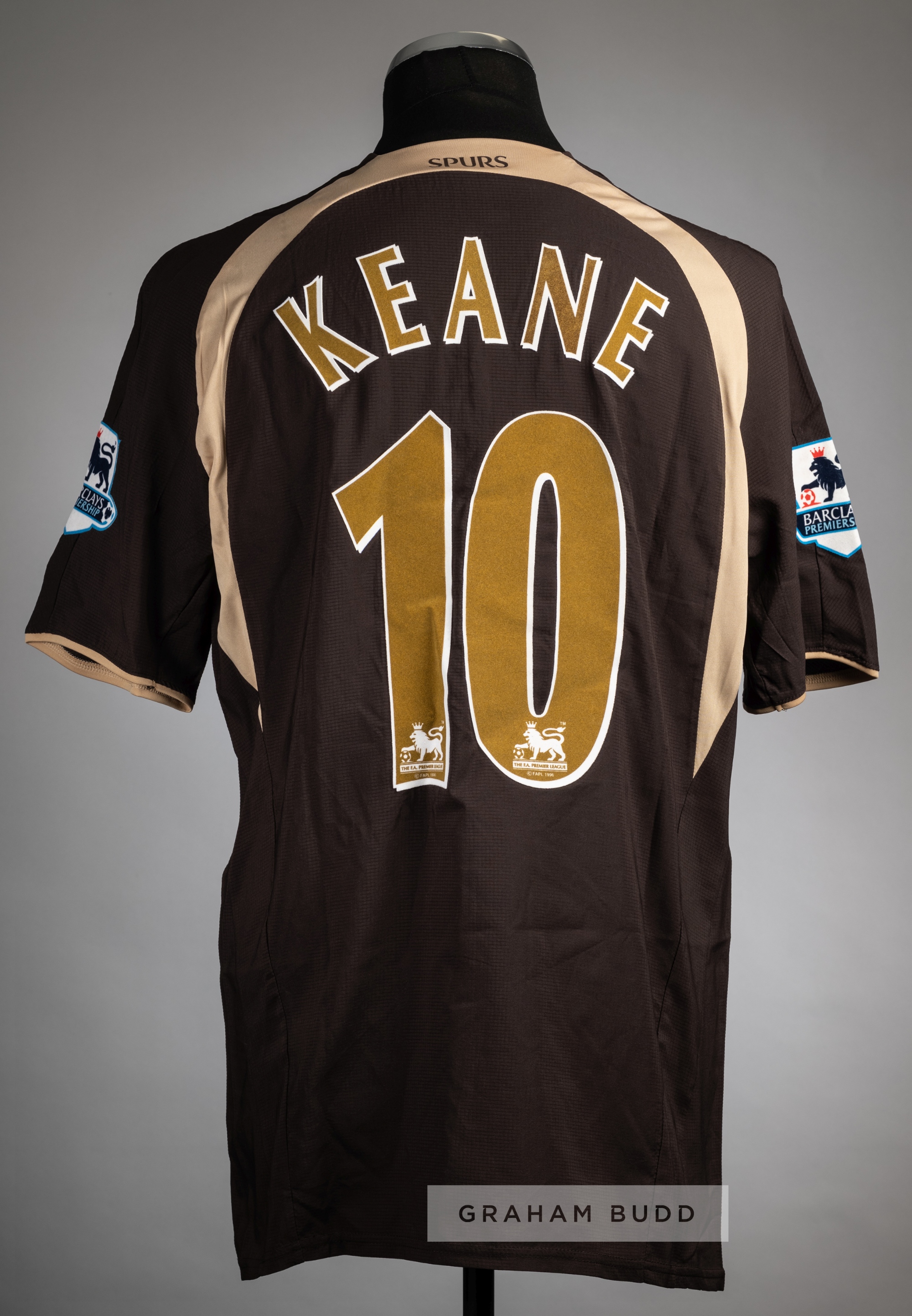 Robbie Keane brown Tottenham Hotspur no.10 third choice jersey, season 2006-07, Puma, short-sleeved with BARCLAYS PREMIERSHIP sleeve badges, club crest and sponsor logo, reverse lettered KEANE