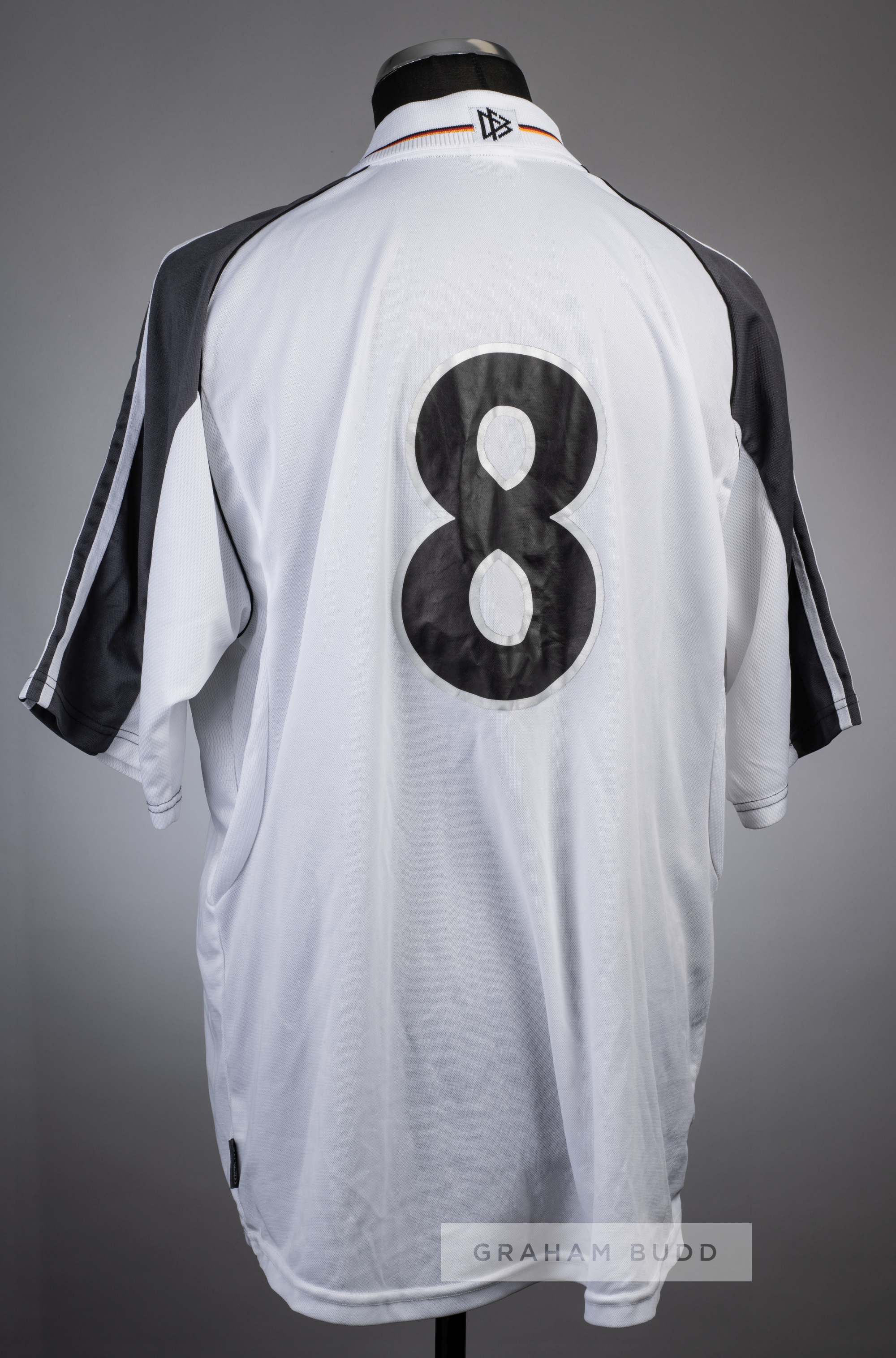 Dietmar Hamman white Germany No.8 home jersey, circa 2000, Adidas, short-sleeved with national emblem and Adidas logo, reverse numbered 8 Provenanc