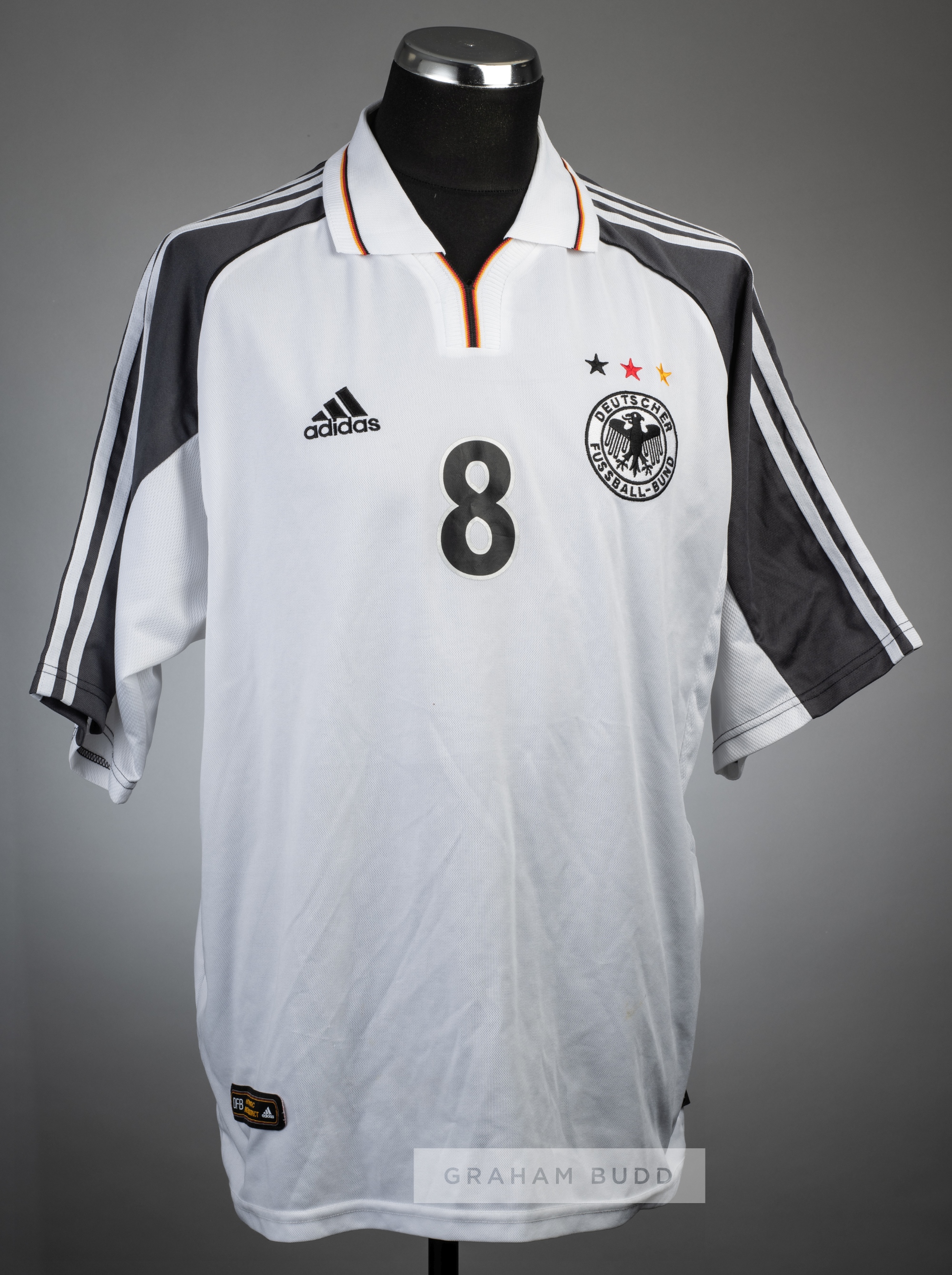 Dietmar Hamman white Germany No.8 home jersey, circa 2000, Adidas, short-sleeved with national emblem and Adidas logo, reverse numbered 8 Provenance: Sotheby's Olympia 18th February 2003 Lot 114