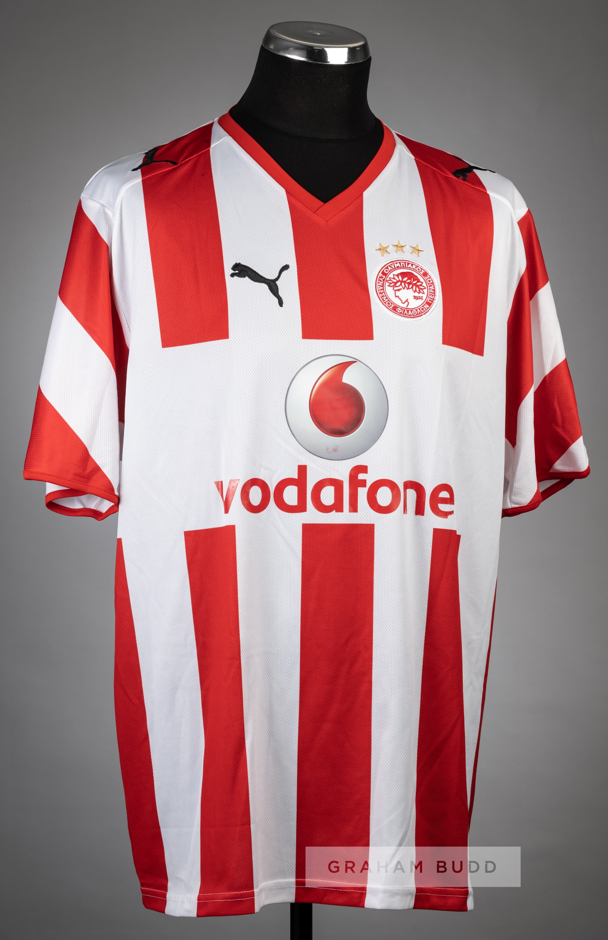 Luciano Galletti red and white Olympiacos FC no.7 home jersey, season 2008-09, Puma, short-sleeved with club crest badge, Puma and sponsor logo's, re