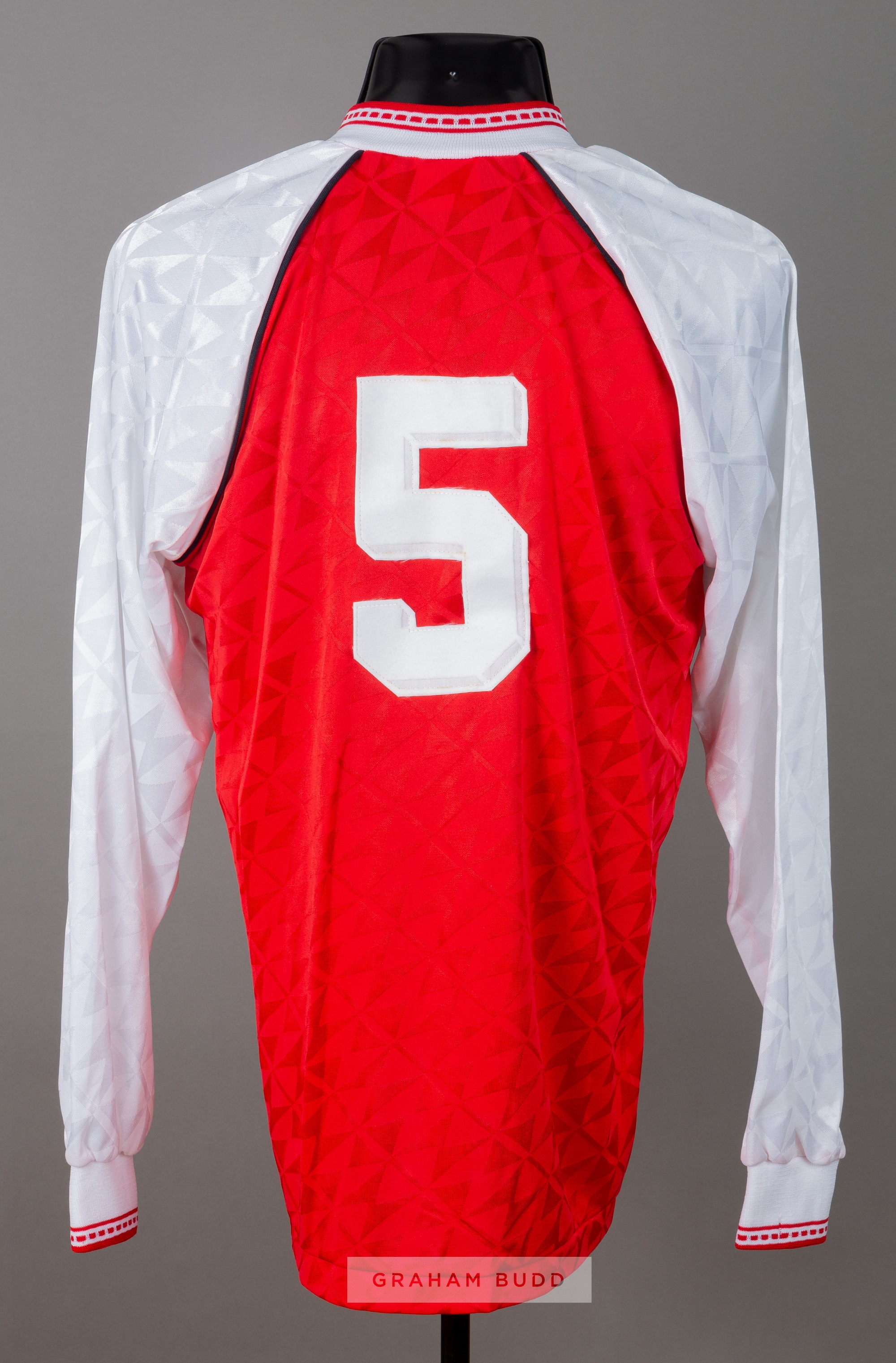 Dougie Lawrie red and white Stirling Albion Second Division Champions no.5 jersey, season 1990-91, Spall, long-sleeved inscribed 2ND DIVISION CHAMPIONS 1990-91, embroidered club crest and sponsor logo, reverse numbered 5