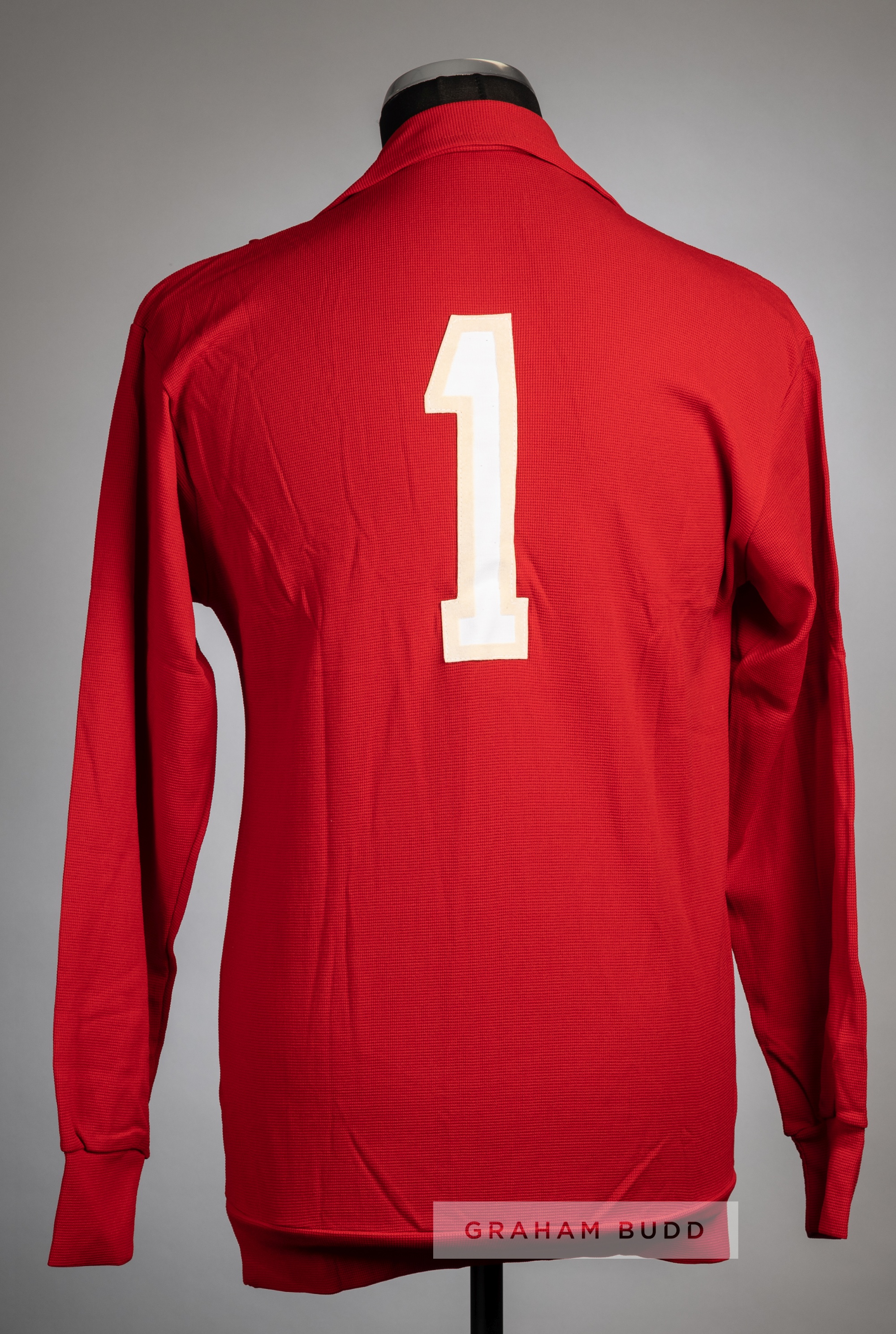 Peter Latchford red Celtic Scottish League Cup final no.1 goalkeeper's jersey v Rangers at Hampden Park, 18th March 1978, Umbro, long-sleeved, embroidered with SCOTTISH LEAGUE CUP FINAL 1978 and club crest, reverse numbered 1, possible replacement number Rangers defeated Celtic 2-1 after extra time.