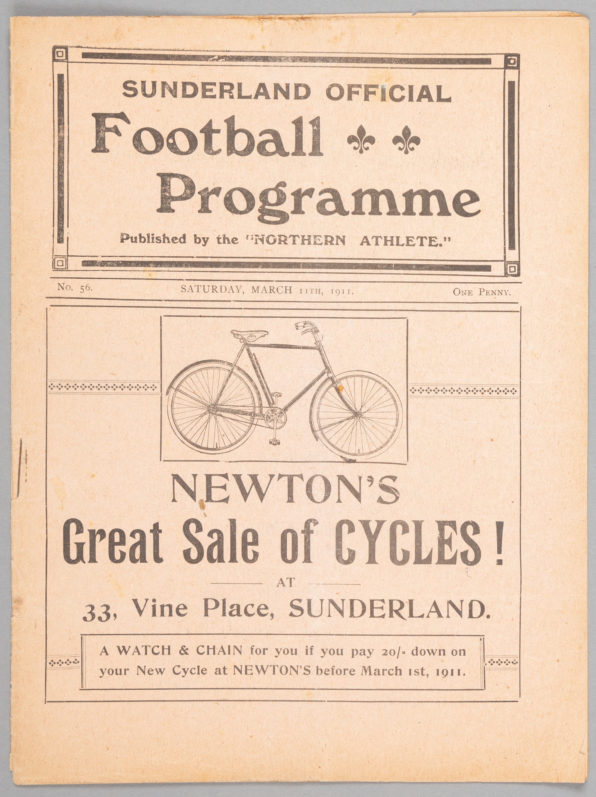 Sunderland v The [Sheffield] Wednesday programme 11th Mach 1911, F.L. Division One fixture