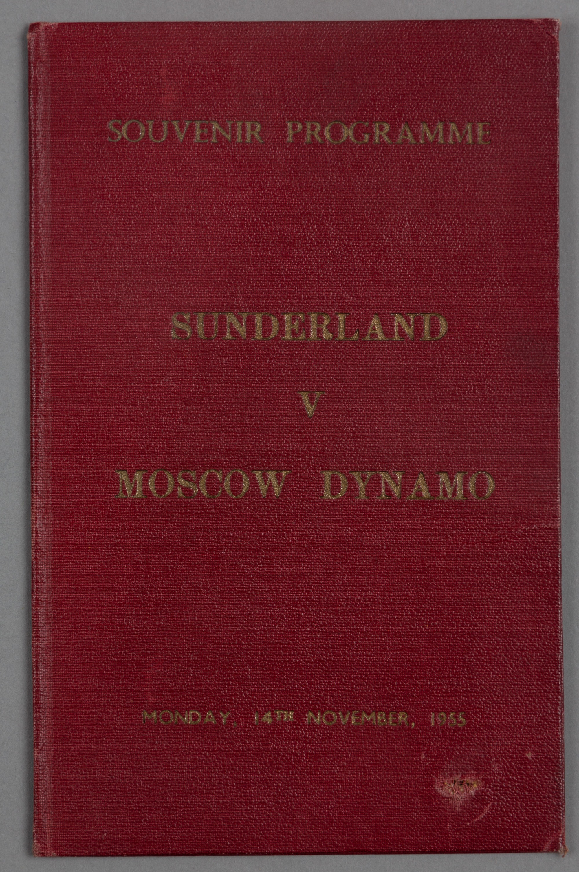 Sunderland v Moscow Dynamo presentation souvenir programme, played at Roker Park, 14th November 1955, bound in a red hardback cover with gilt tooling