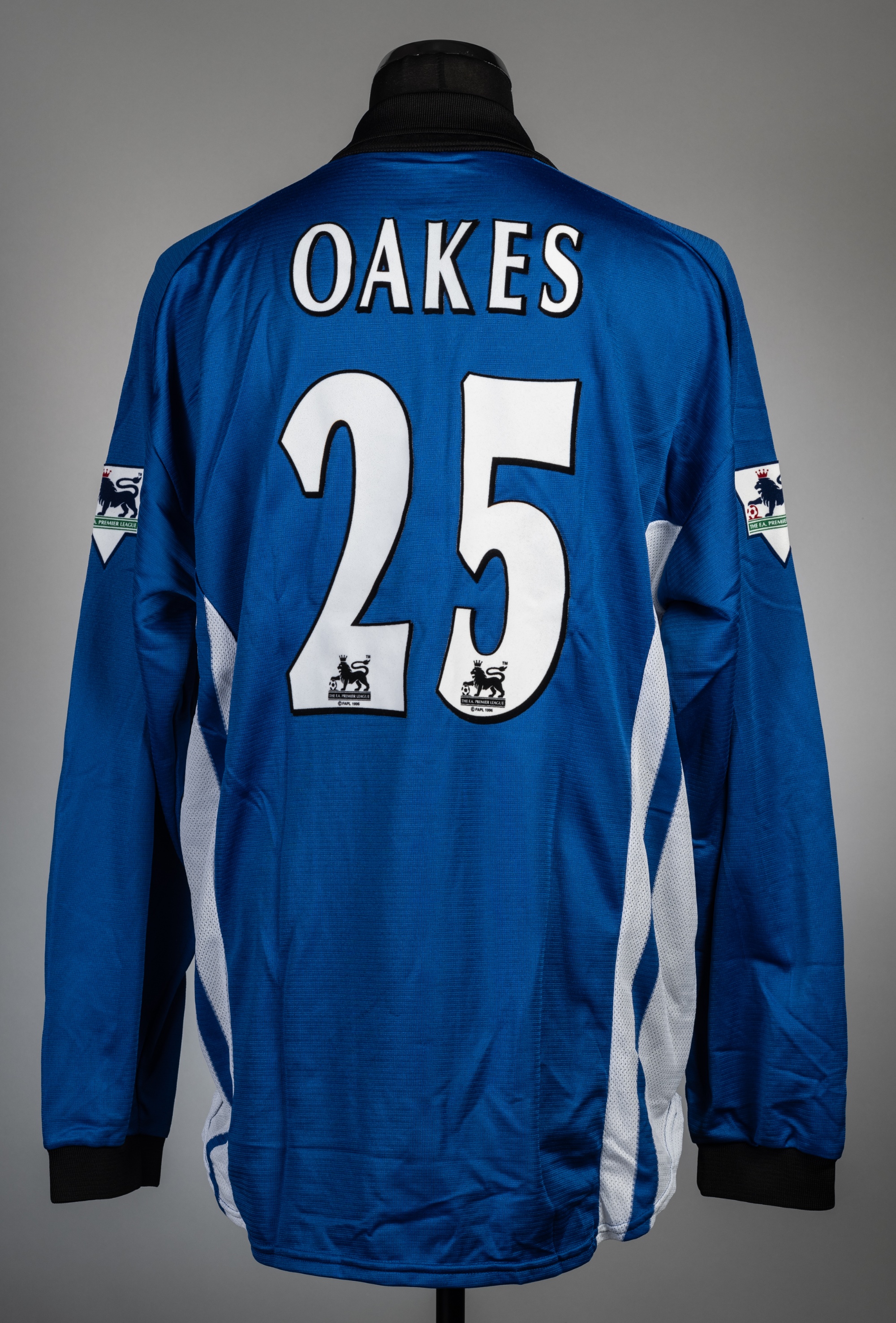 Scott Oakes blue & white striped Sheffield Wednesday No.25 home jersey, season 1999-2000, Puma, long-sleeved, Premier League badges, the reverse lettered OAKES