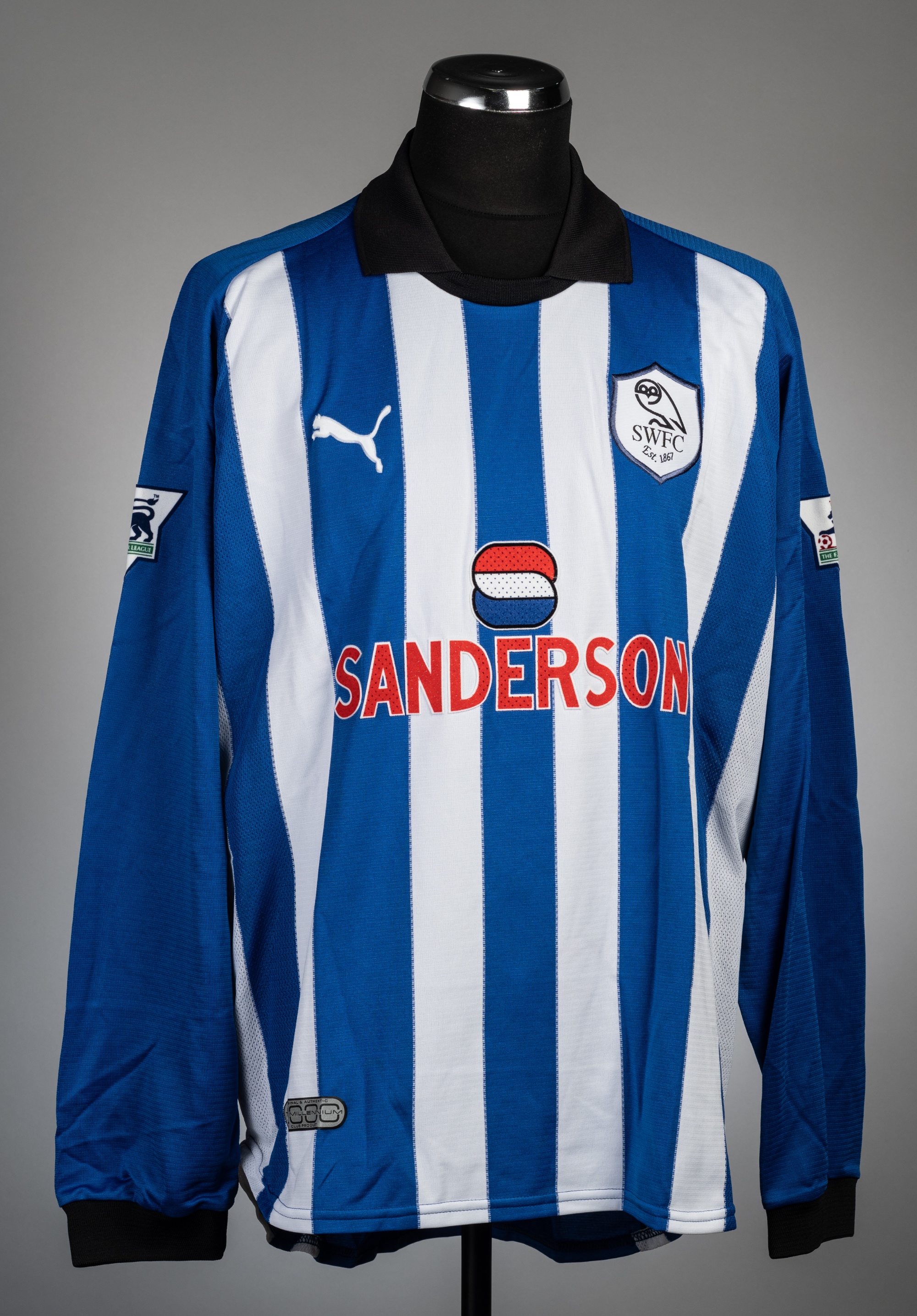 Scott Oakes blue & white striped Sheffield Wednesday No.25 home jersey, season 1999-2000, Puma, long-sleeved, Premier League badges, the reverse lett
