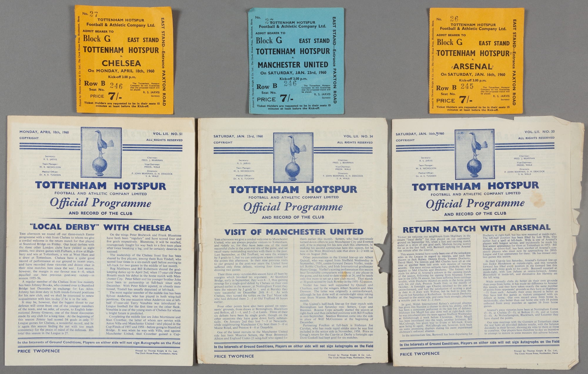 A collection of 19 Tottenham Hotspur programmes and 12 tickets from season 1959-60, 12 homes all with tickets, 7 aways without tickets