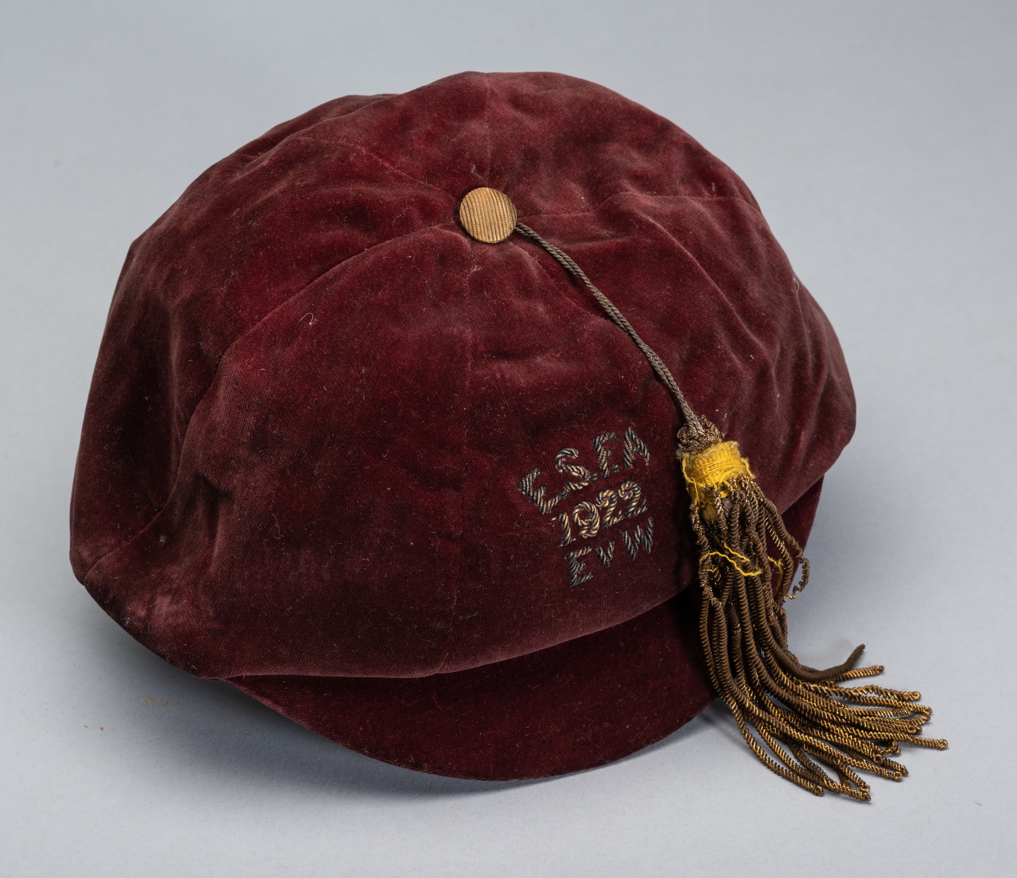 England School's Football Association representative cap v Wales, 1922, red velvet cap with gilt tassel, embroidered E.S.F.A. 1922 E v W, bearing Chr