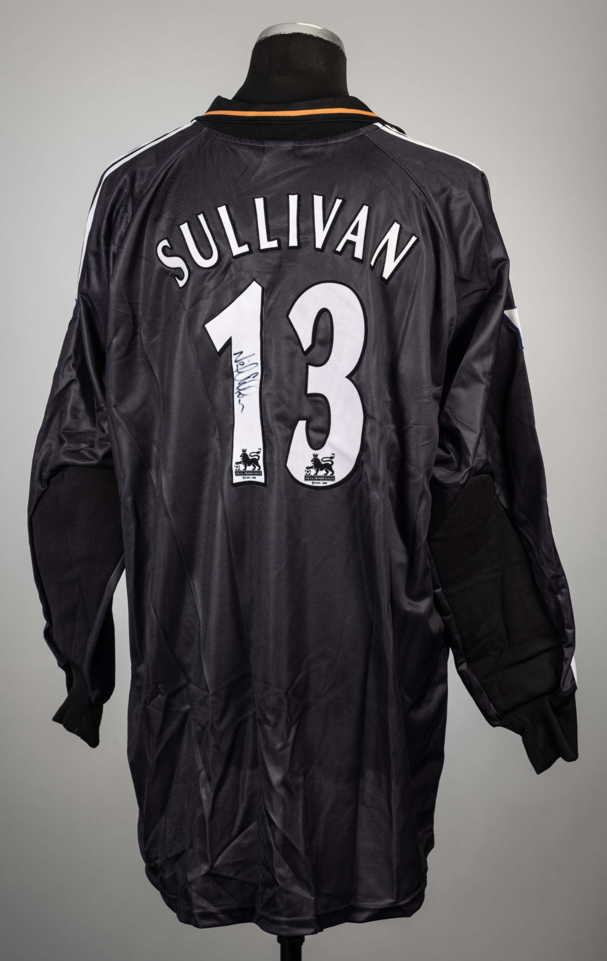 Neil Sullivan signed black Tottenham Hotspur no.13 goalkeeper's jersey, season 2000-01 Adidas, long-sleeved with THE FA PREMIER LEAGUE badges, club c
