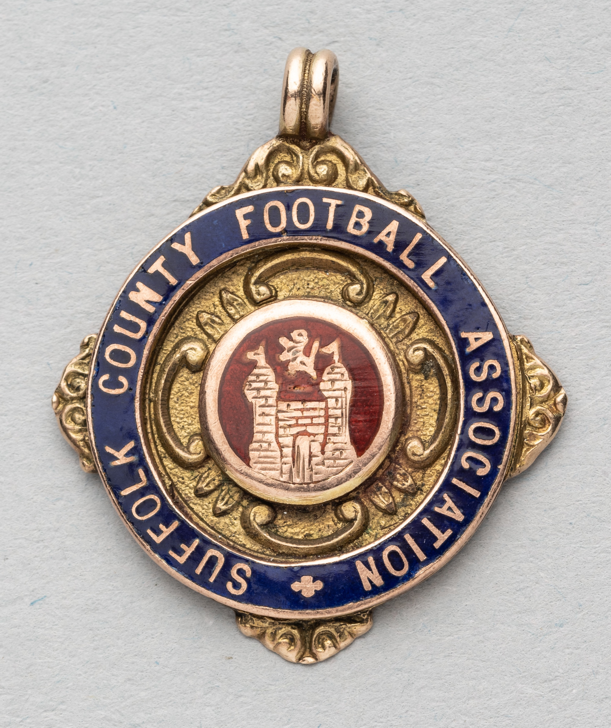 Suffolk County Football Association Senior Cup winner's medal awarded to an Ipswich Town player, 1927-28, obverse enamelled with county crest and let