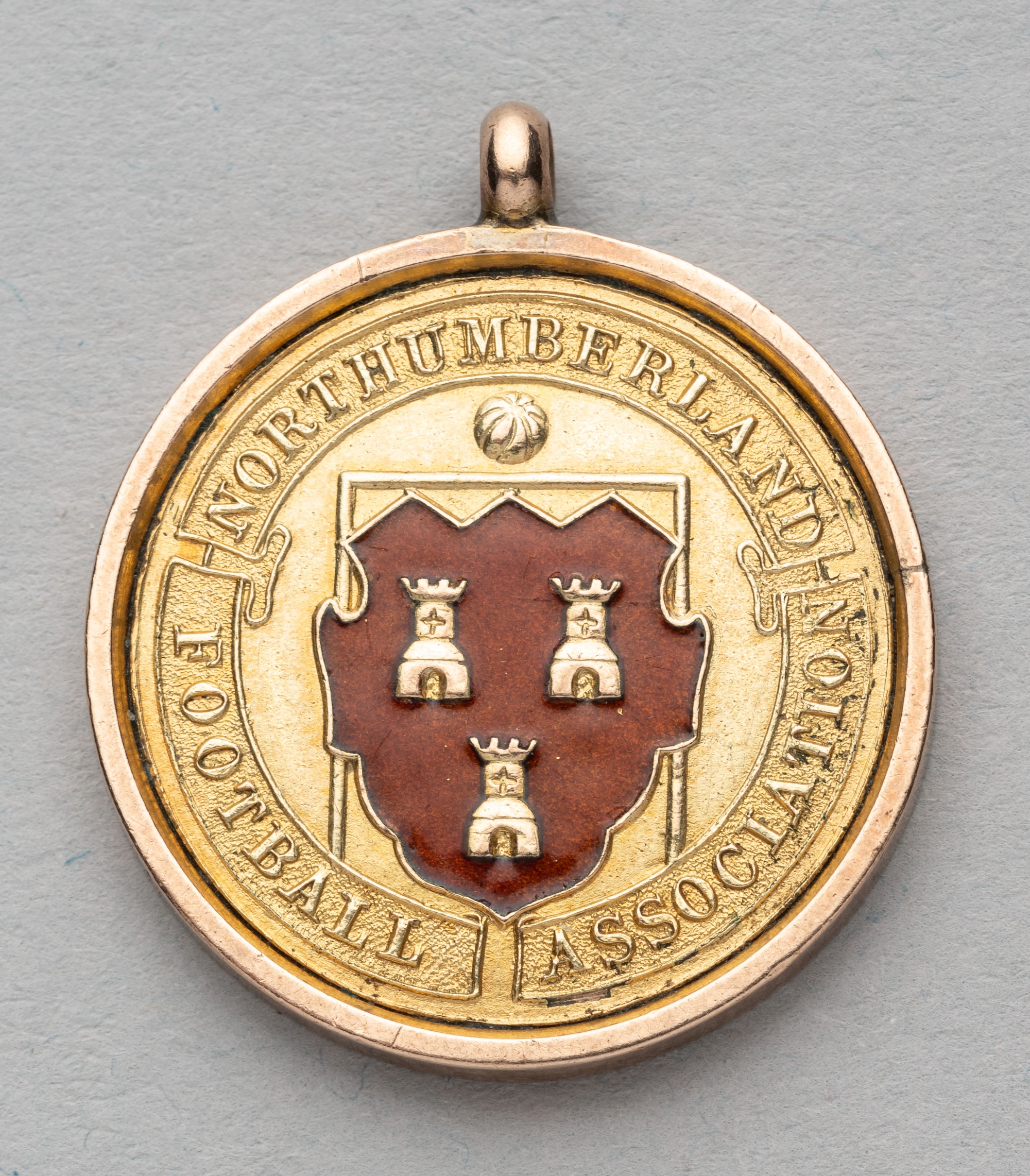Northumberland Football Association Senior Cup winner's medal awarded to Newcastle United's Edwin Dutton 1911-12, obverse with red enamelled shield a